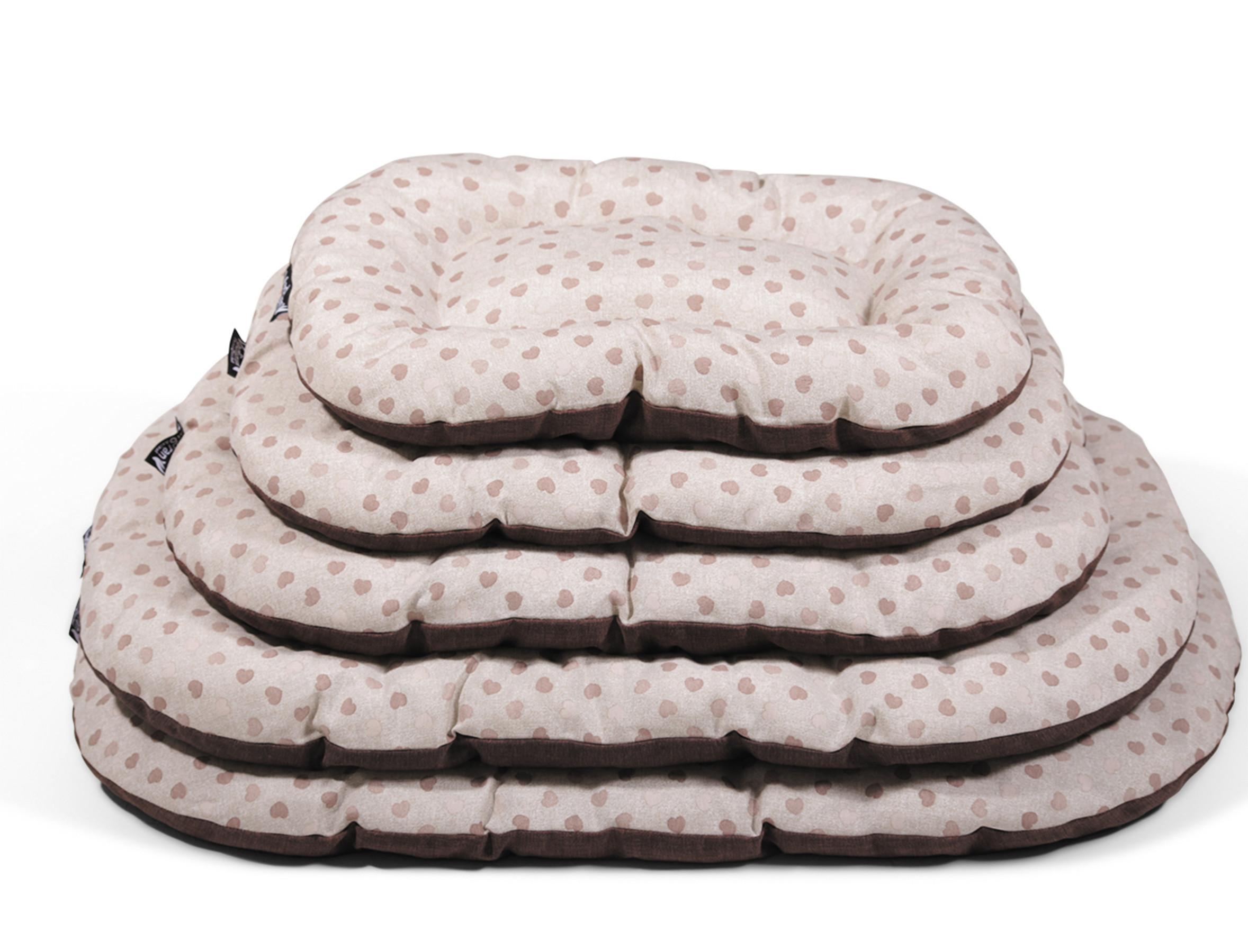 Het Valentina kussen is een mooi ovaal hondenbed, versierd met hartjes aan de bovenkant. De klassieke kleuren passen perfect in elk interieur.