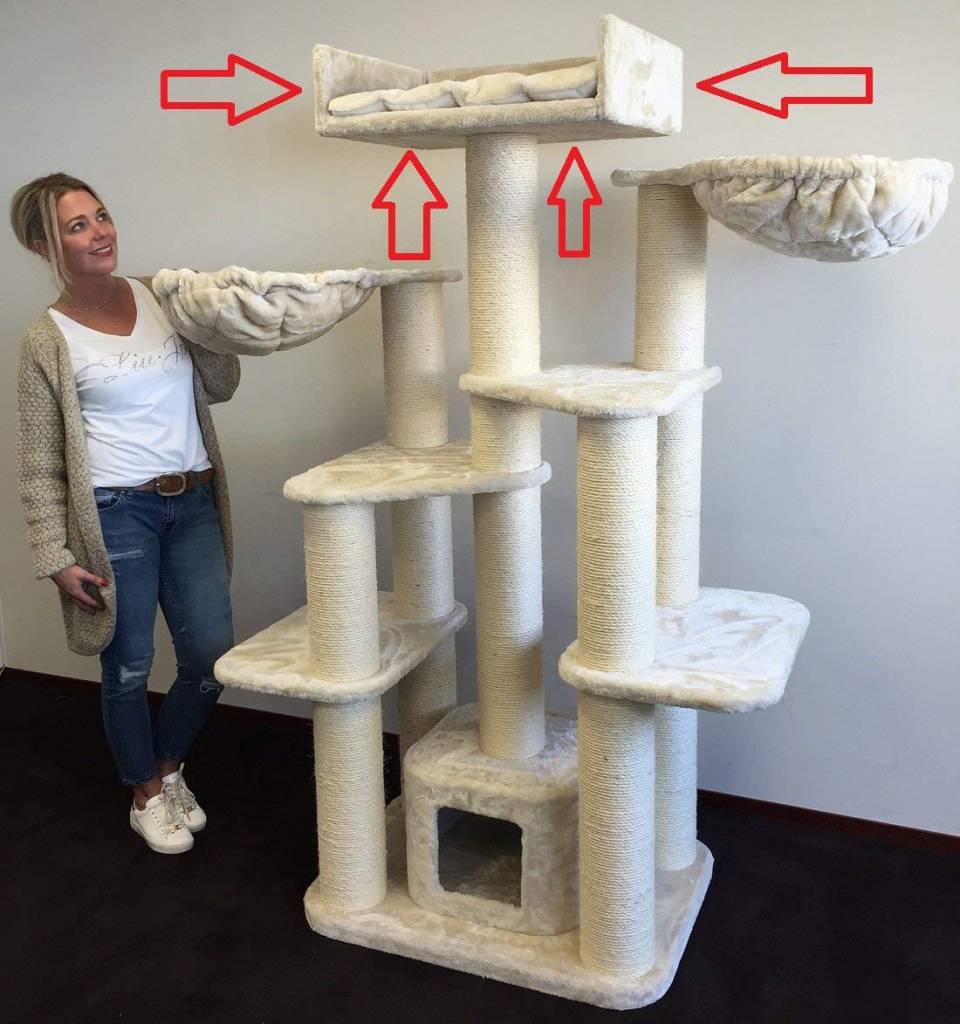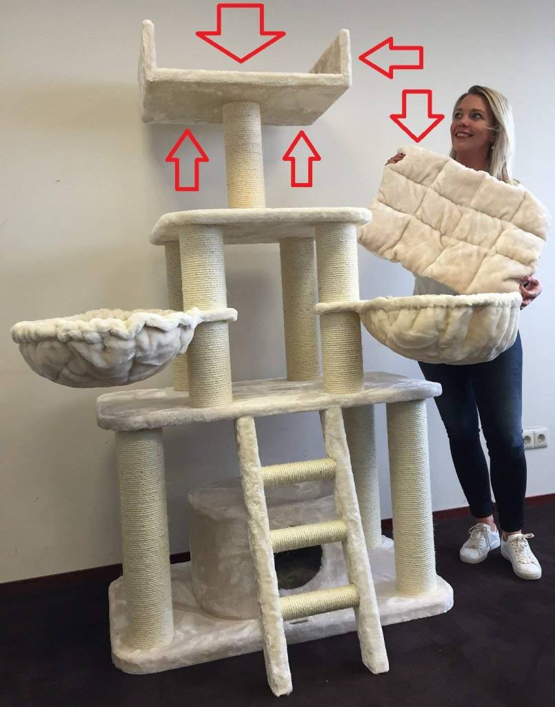 Ligbak Lounge + Kussen Crème is enorme ligbak inclusief zacht kussen die op een krabpaal te plaatsen is . Met een maat van 60×43 cm geschikt voor 2 katten of een hele grote kat. Deze Ligbak Lounge + Kussen Crème is eenvoudig op vele krabpalen te plaatsen op een bestaande sisalpaal.