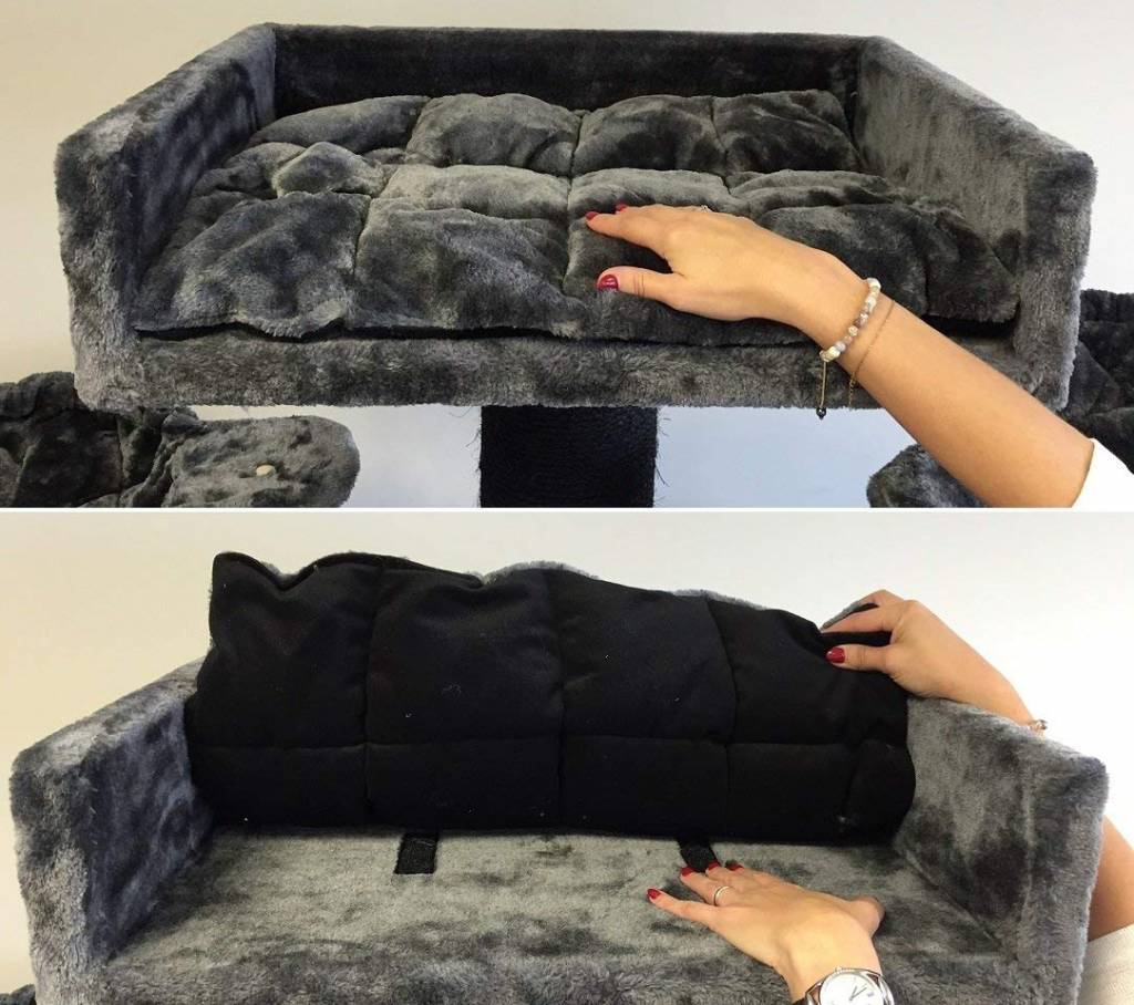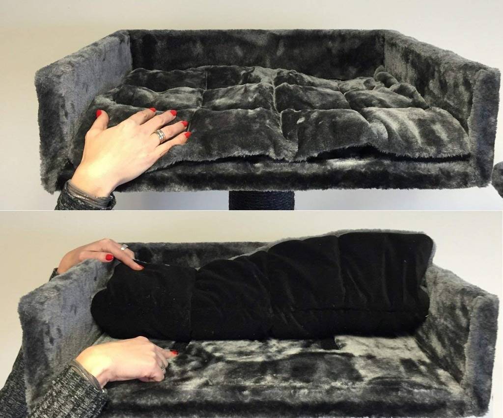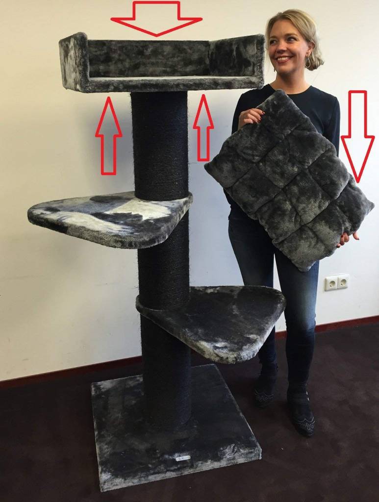 Ligbak Lounge + Kussen Antraciet is enorme ligbak inclusief zacht kussen die op een krabpaal te plaatsen is . Met een maat van 60×43 cm geschikt voor 2 katten of een hele grote kat. Deze Ligbak Lounge + Kussen Antraciet is eenvoudig op vele krabpalen te plaatsen op een bestaande sisalpaal.