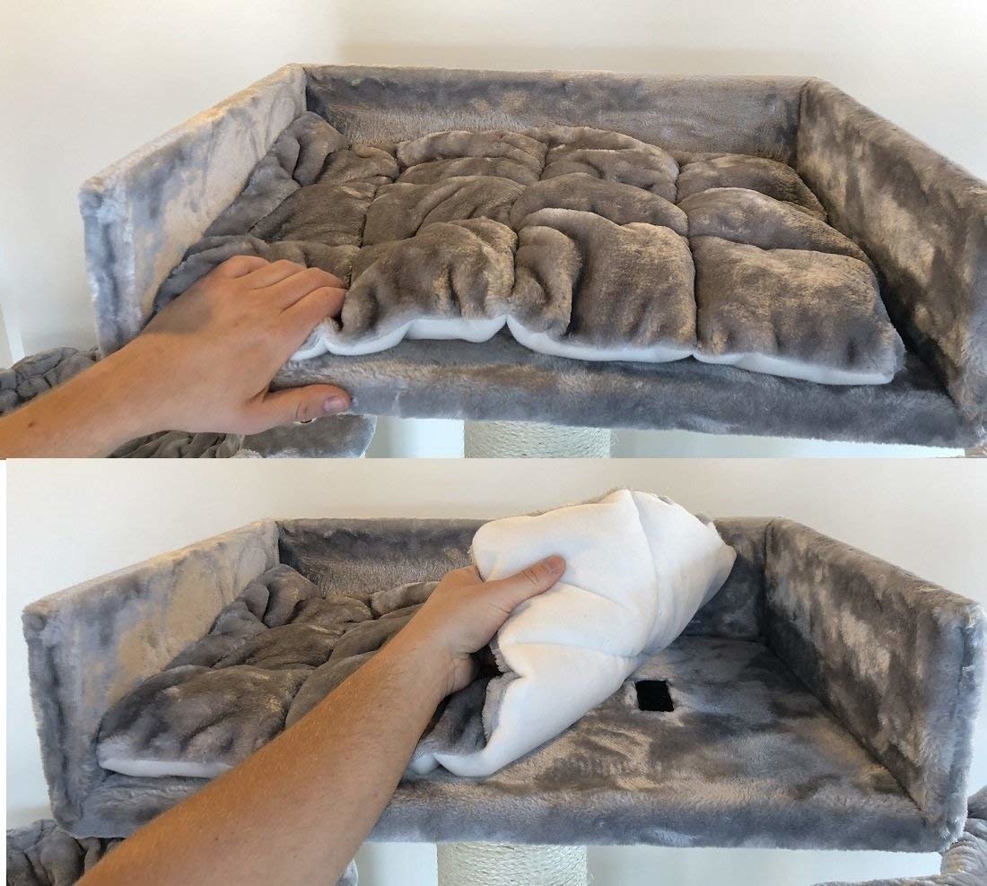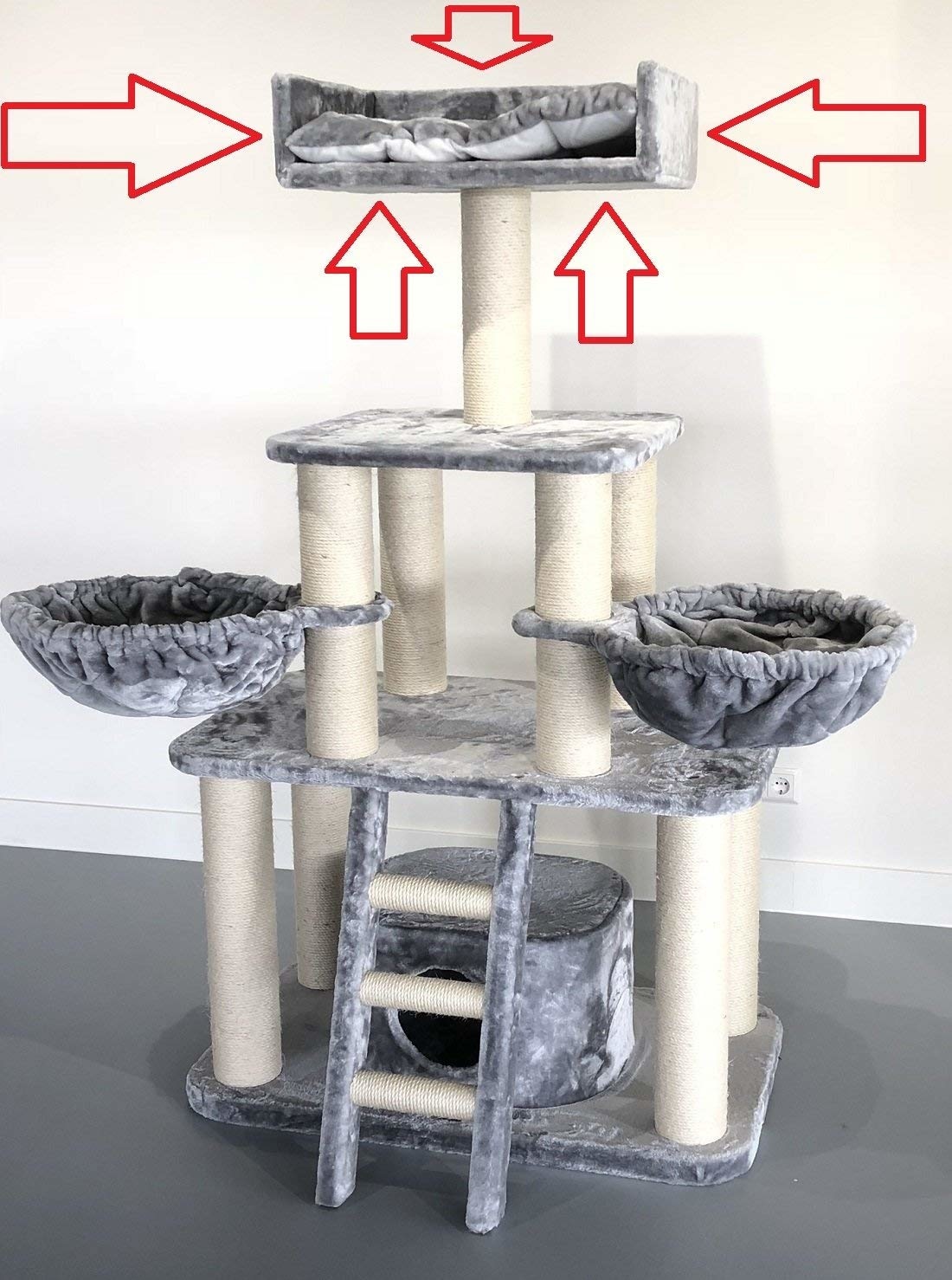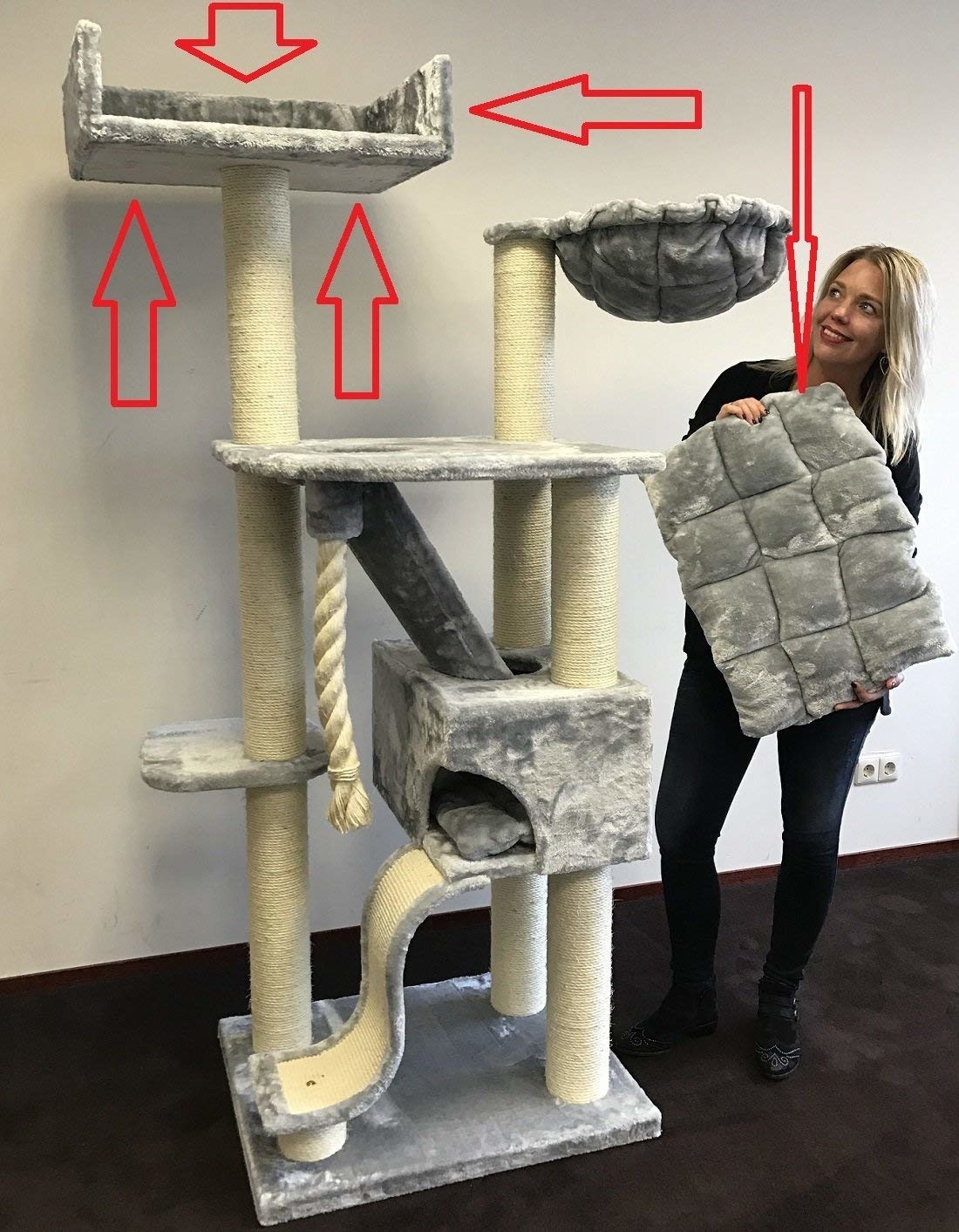 Ligbak Lounge + Kussen Light Grey is enorme ligbak inclusief zacht kussen die op een krabpaal te plaatsen is. Met een maat van 60×43 cm geschikt voor 2 katten of een hele grote kat. Deze Ligbak Lounge + Kussen is eenvoudig op vele krabpalen te plaatsen op een bestaande sisalpaal.