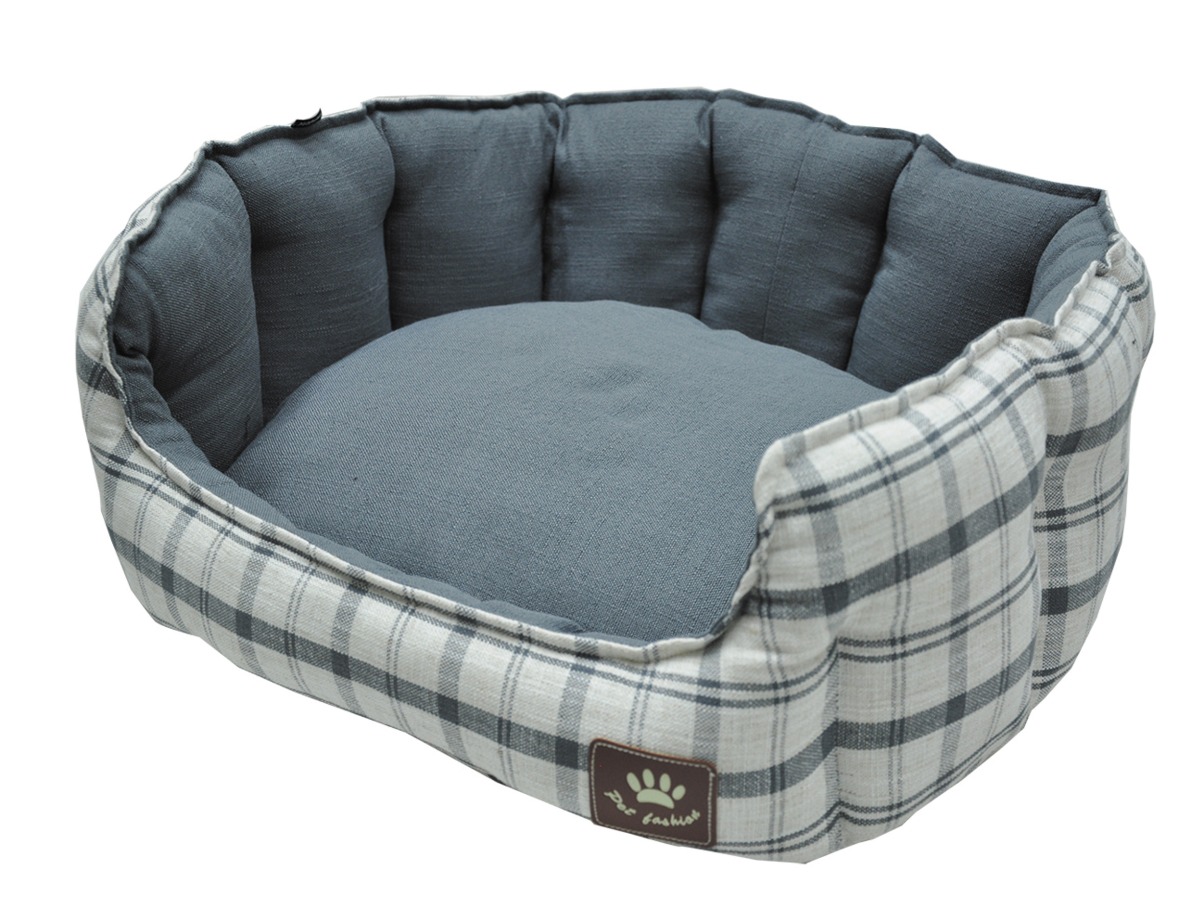Mand met gevoerde binnenkant in bijpassende effen stof.Verkrijgbaar in twee verschillende kleuren.