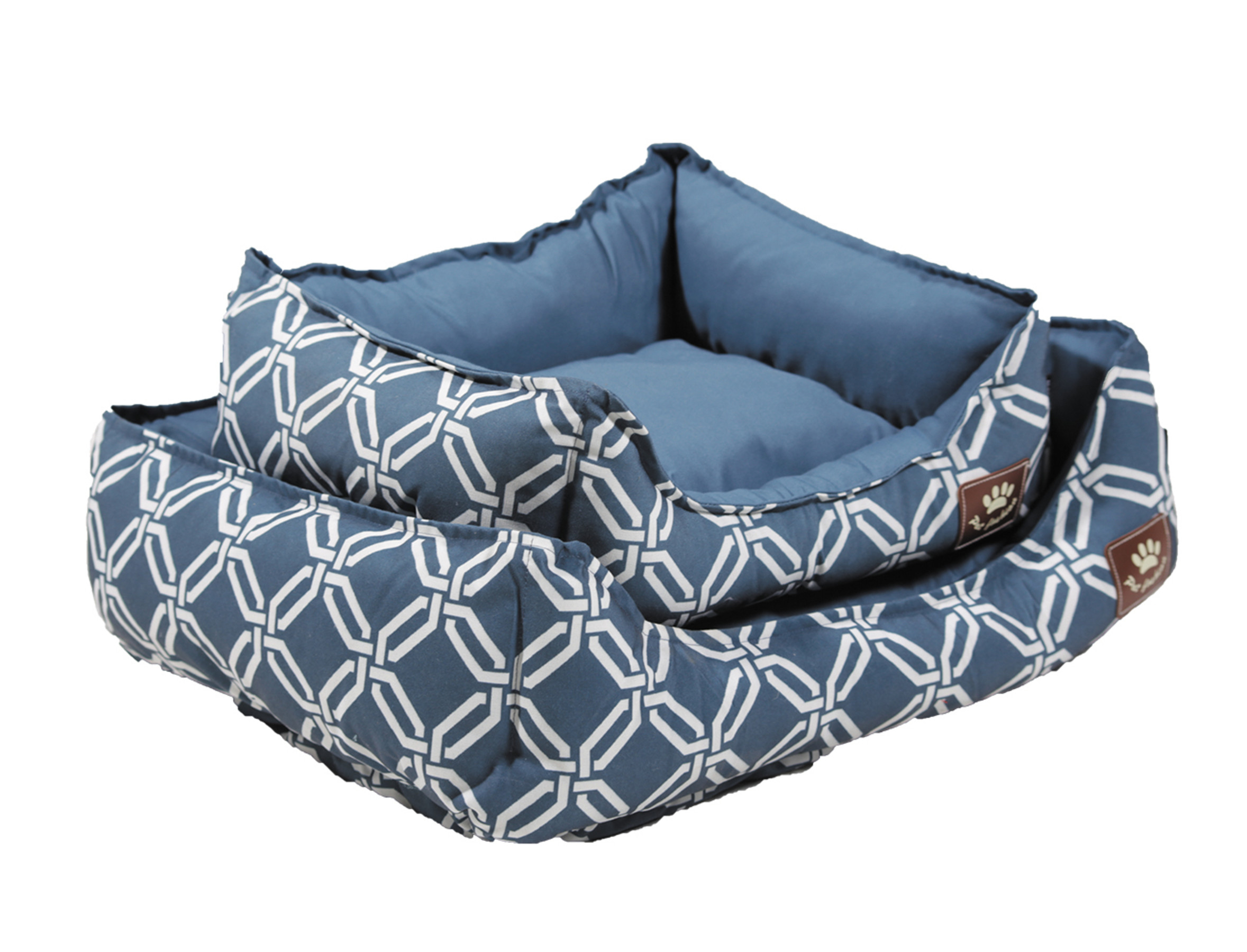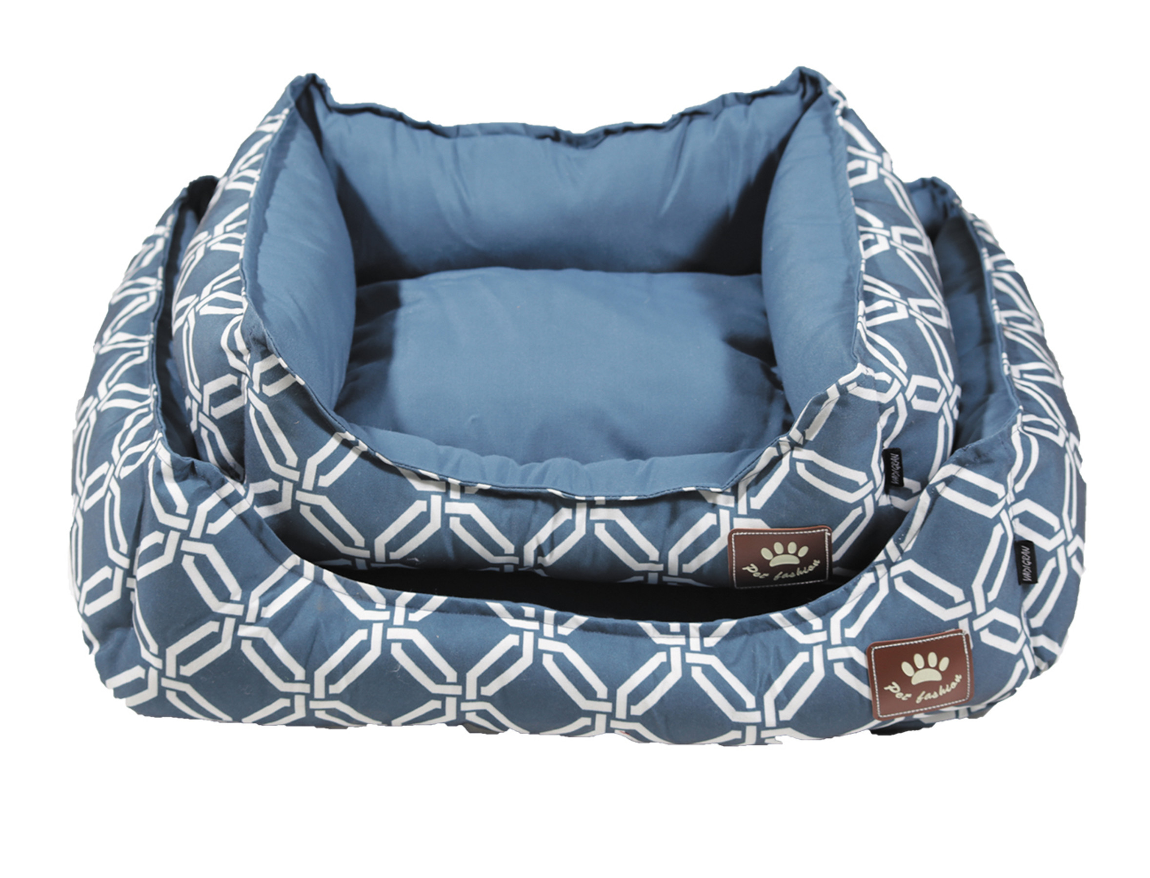 De Giuliano mand is een mooi hondenbed met moderne geometrische patronen aan de ene kant en een effen stof aan de andere kant. De trendy kleur brengt een vleugje moderniteit in uw interieur.De Giuliano hondenmand is omkeerbaar en kan daarom aan beide kanten worden gebruikt: de kant met geometrische patronen of de effen kant. De afwerking is aan beide zijden perfect, de “boven” of “onderkant” valt niet te onderscheiden.