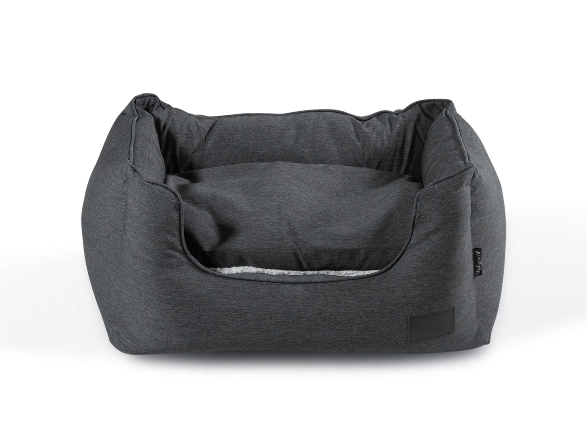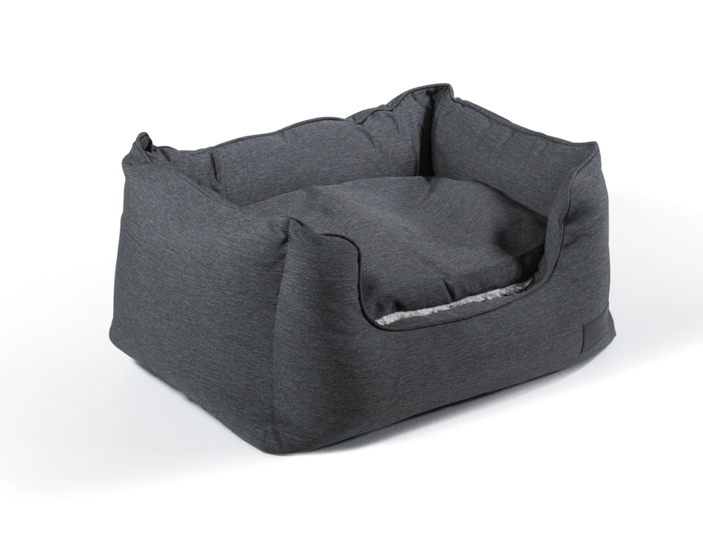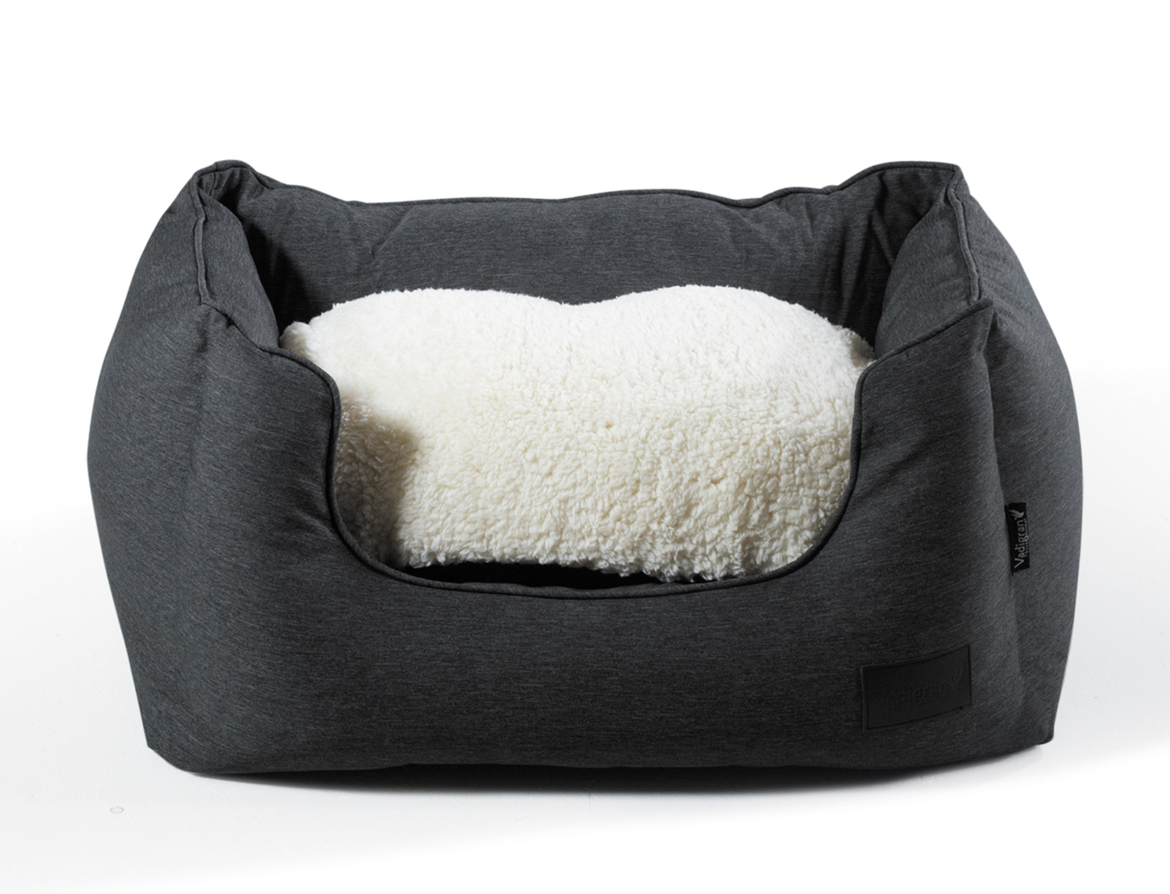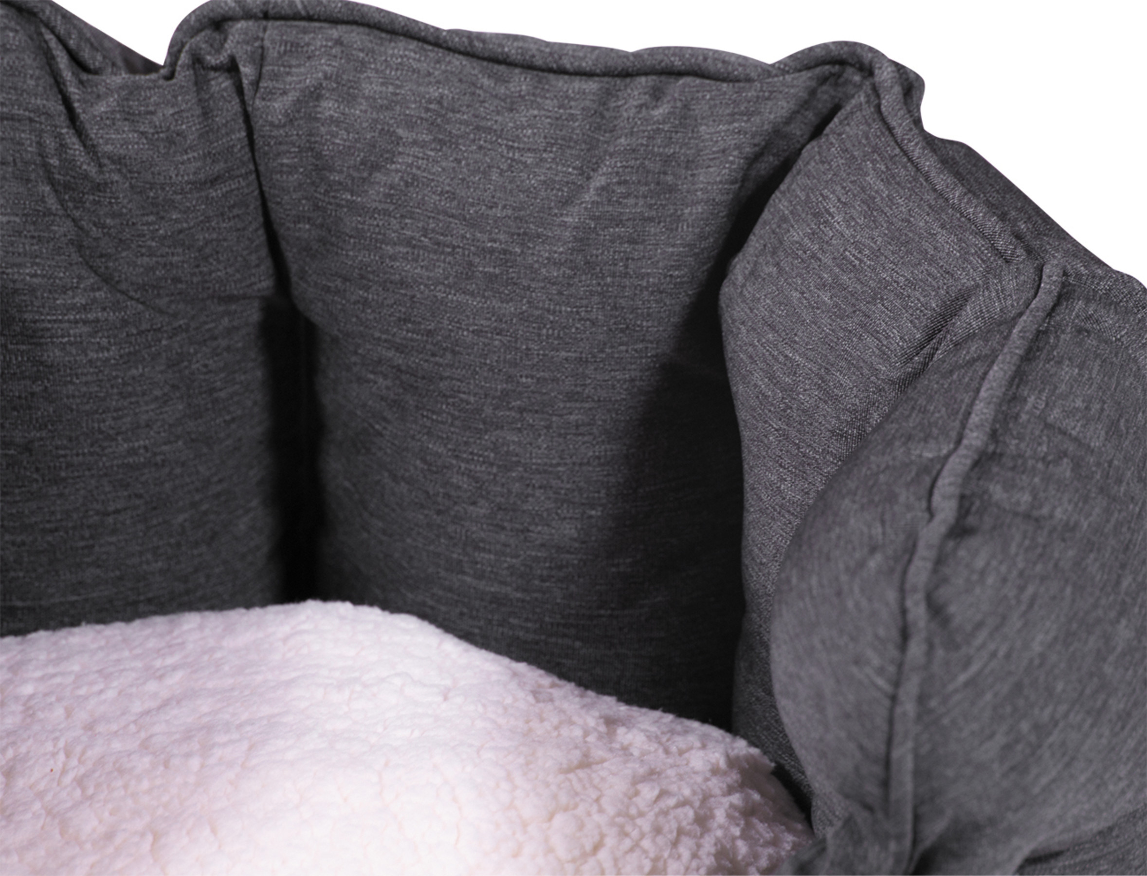 De Himalaya hondenmand is voorzien van een stevige vulling die de hond goed ondersteunt.De mand is bekleed met een volledig verwijderbaar kussen, met op elke zijde een stof in een andere kleur en materiaal: een zachte witte fleece aan de ene kant en een robuuste en vuilafstotende antraciet stof aan de andere kant.De hoes is afneembaar en kan machinaal gewassen worden op 30°C.