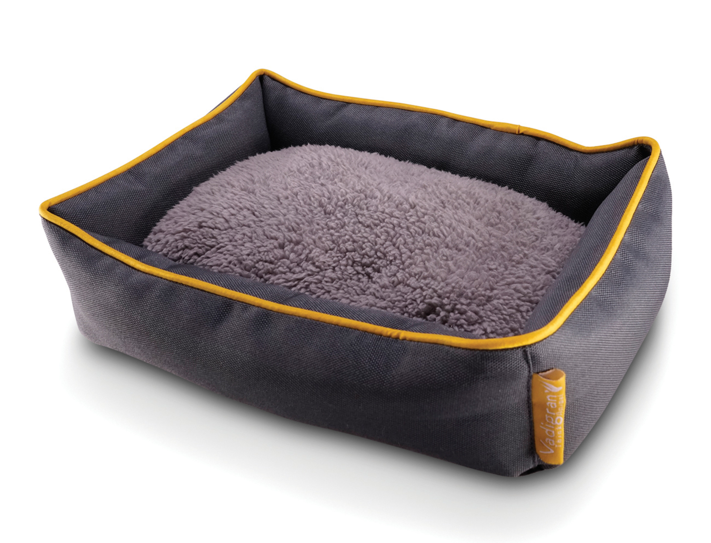 Antislip bodem en omkeerbaar kussentje in pluche of nylon. De zachte pluche aan de binnenkant zorgt voor warmte en geborgenheid, de nylon stof aan de buitenkant kan gereinigd worden