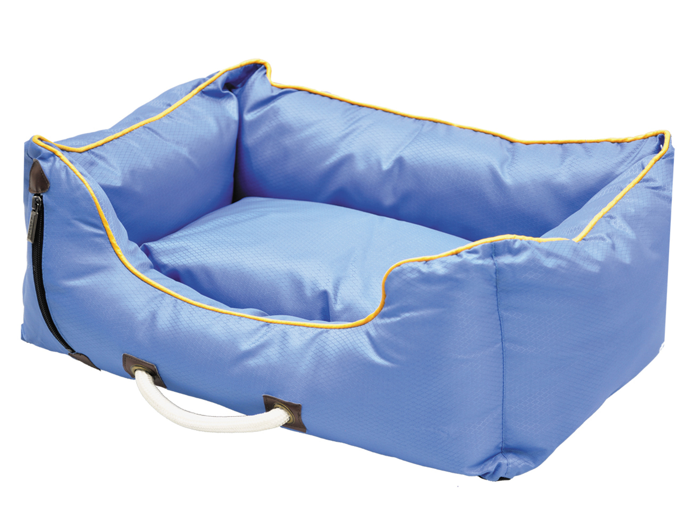 Met apart kussen, afwerking met een rand, wit kantoenen handvat en een decoratieve rits.Goed opgevuld, wat veel steun geeft.