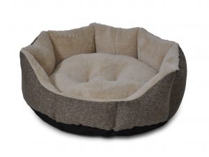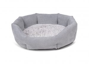 Kussen met langharige pluche aan 1 zijde en andere zijde bekleed met zachte stof