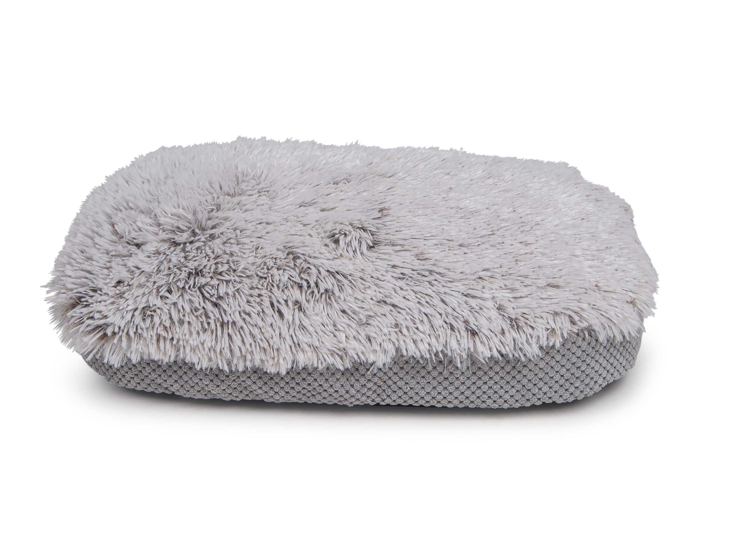 Kussen met langharige pluche aan 1 zijde en andere zijde bekleed met zachte stof