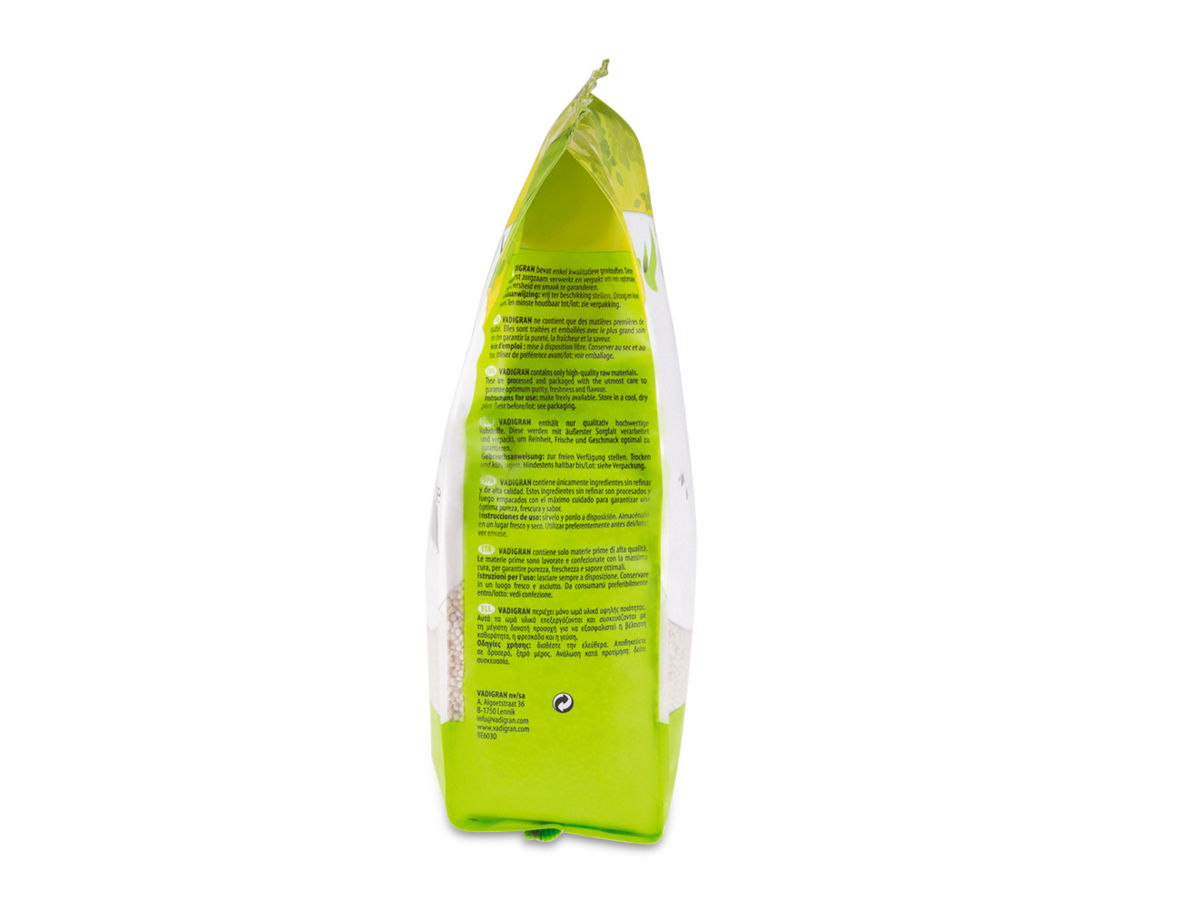 Vadigran producten bevatten uitsluitend grondstoffen van hoge kwaliteit.De drievoudige reiniging die wordt uitgevoerd tijdens de productie van het Vadigran voedsel resulteert in enkele van de zuiverste producten op de markt. Vadigran streeft er ook naar het vochtgehalte in zijn voedsel te minimaliseren en het met de grootste zorg in te pakken om zo zuiverheid, versheid en smaak te garanderen.