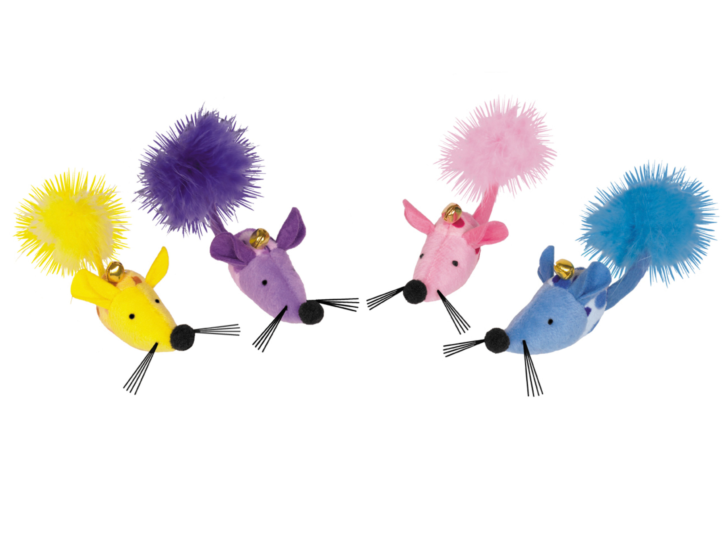 Pluche spitse muis met bel & catnip Ass. 10cm