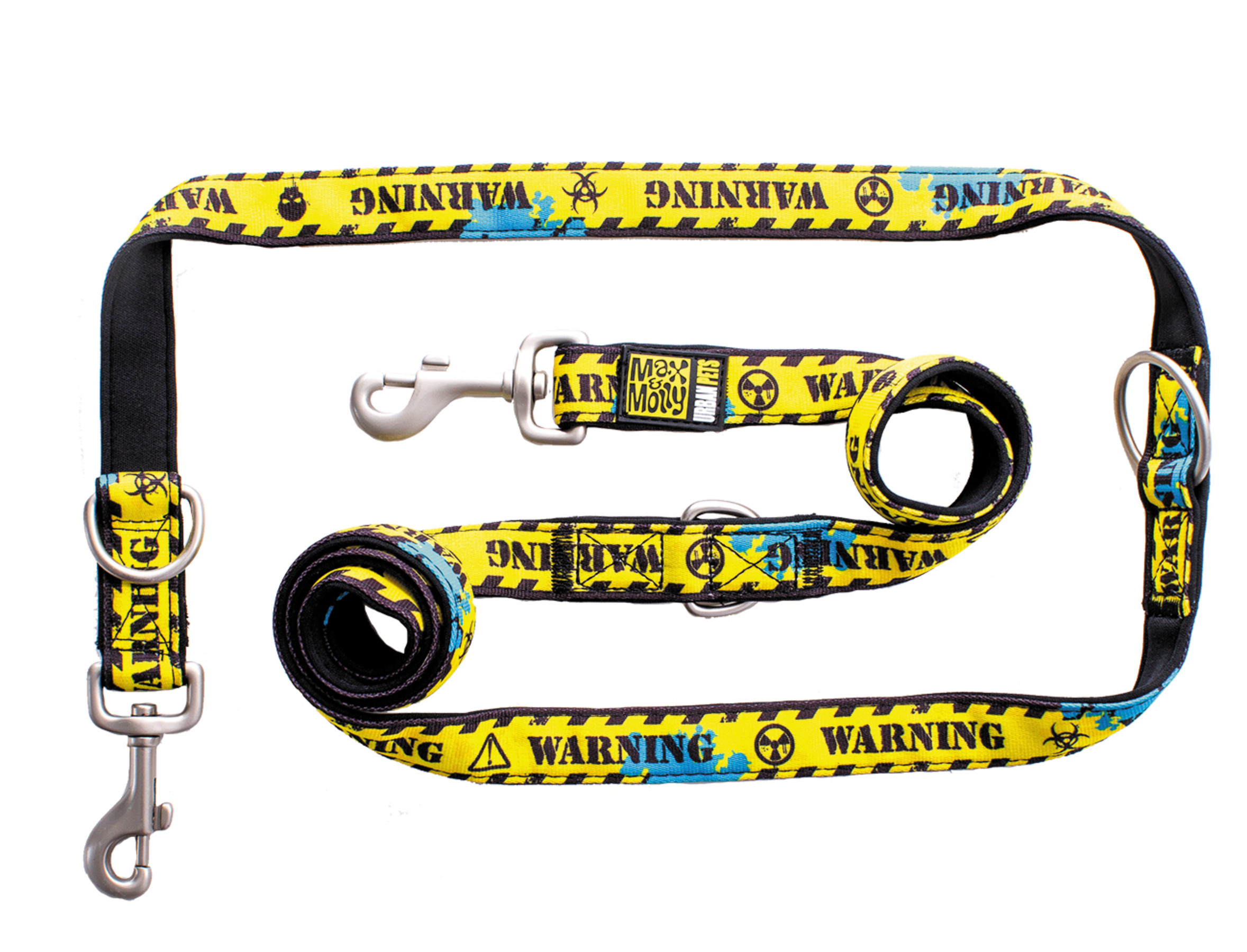 Multifunctionele hondenleiband die zich aan elke situatie aanpast tijdens een wandeling. Hier zijn 7 opties: 1m korte afstand; 1,3m medium afstand; 1,6m lange afstand, heupleiband, schouderleiband, dubbele leiband en tijdelijke aanlegketting.Je hond zal genieten van deze unieke, 3-delige sandwich structuur : een dikke laag ultra sterk polyester aan de buitenkant, een zachte vulling binnenin en een moderne, anti-allergische neoprene laag die snel opdroogt aan de nek van de hond.Het blijft comfortabel, ongeacht het aantal keren dat je het om je hand wikkelt. Na onze veiligheidstesten te hebben doorstaan bewijst deze leiband dat je hond niet zal kunnen ontsnappen.Alle metalen onderdelen zijn mooi glad gemaakt. De haak is makkelijk vast te hechten zonder dat je vingers of nagels ervan pijn doen.