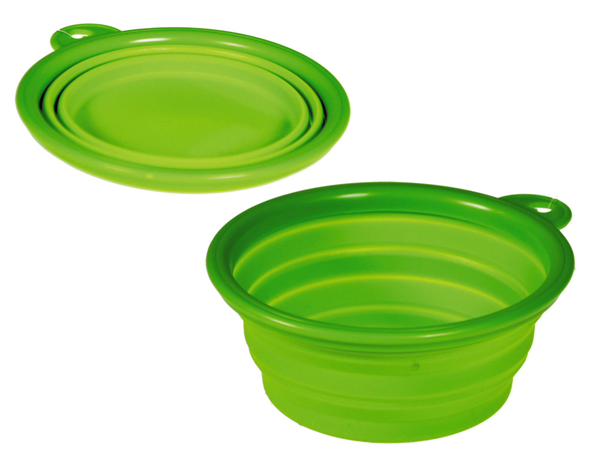 De stevige, plastic rand zorgt ervoor dat de kom haar vorm behoudt; ze is compact als ze opgeplooid is en kan eenvoudig in een tas, zak, rugzak of handschoenenkastje opgeborgen worden