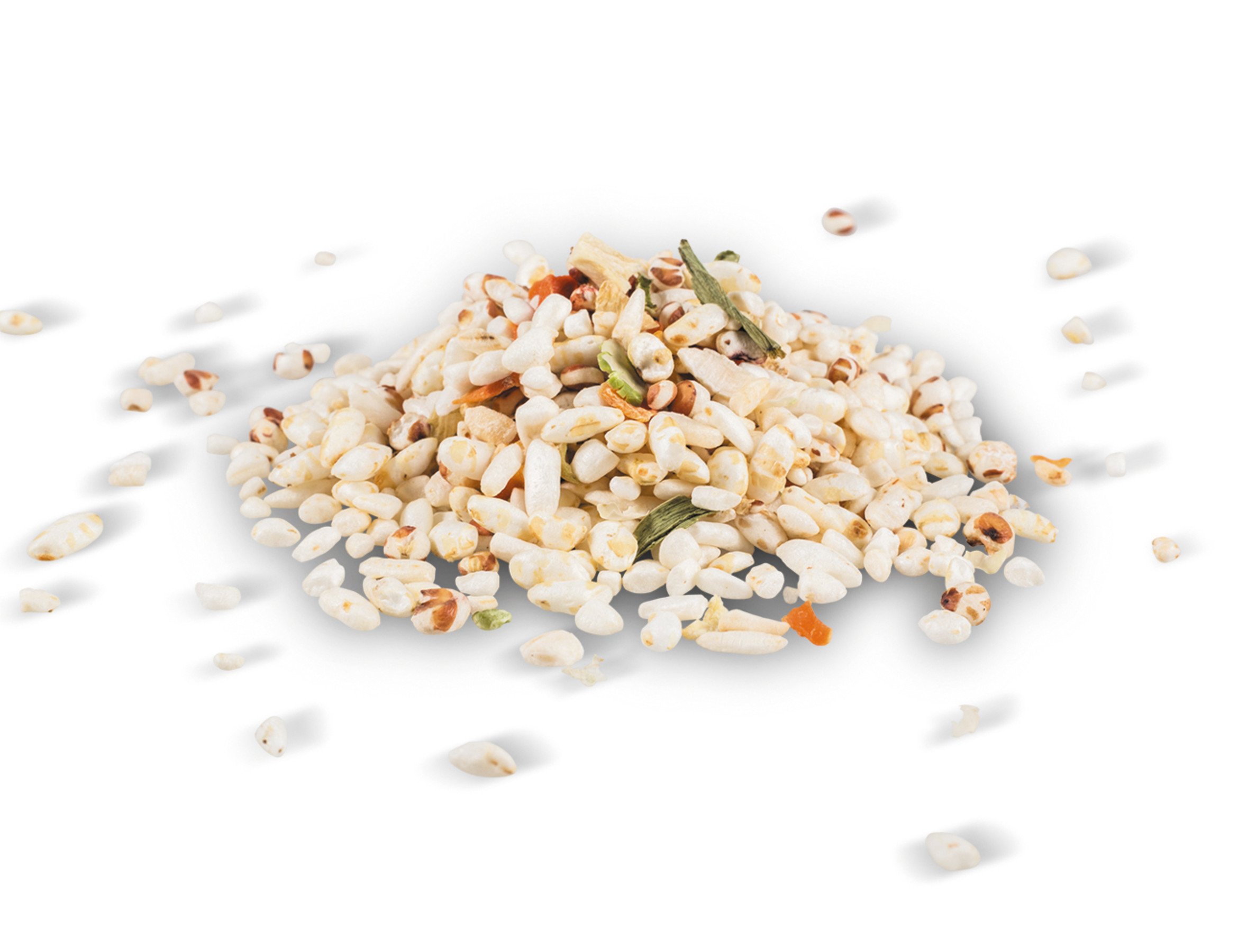 RIZI Veggies bevat een hoog percentage aan groenten (wortel, pastinaak, erwten, johannesbrood, prei) en glutenvrije granen (rijst en sorghum).RIZI is een rijstmengeling voor alle honden en bevat enkel natuurlijke, gezonde en herkenbare ingrediënten zonder kunstmatige toevoegingen, is caloriearm en verhoogt het verzadigingsgevoel van de hond.De vezels in de gedroogde groenten en het absorberende effect van de gepofte granen dragen positief bij tot een optimale darmtransit en een makkelijke vertering.RIZI is een waardevolle en essentiële bron van koolhydraten, voedingsvezels, vitamines en mineralen; kan in combinatie met droogvoer, natvoer, diepvriesvoer of BARF gegeven worden.