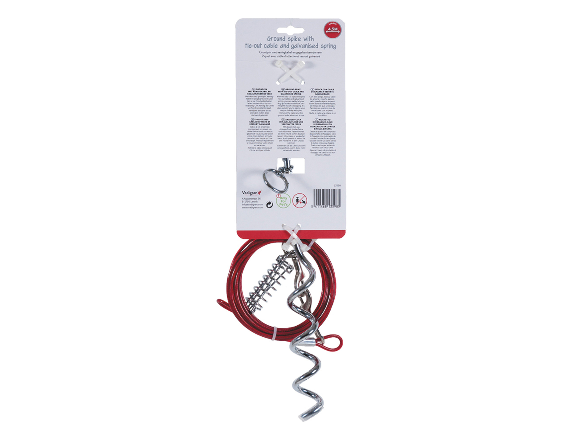 Deze aanleglijnset omvat een spiraalvormige, stalen kabel zodat uw hond zichzelf niet bezeert als hij te hard trekt; de beschermende plastic laag maakt de kabel stevig, weersbestendig en is niet schadelijk voor de hond; geschikt voor honden tot 50 kg