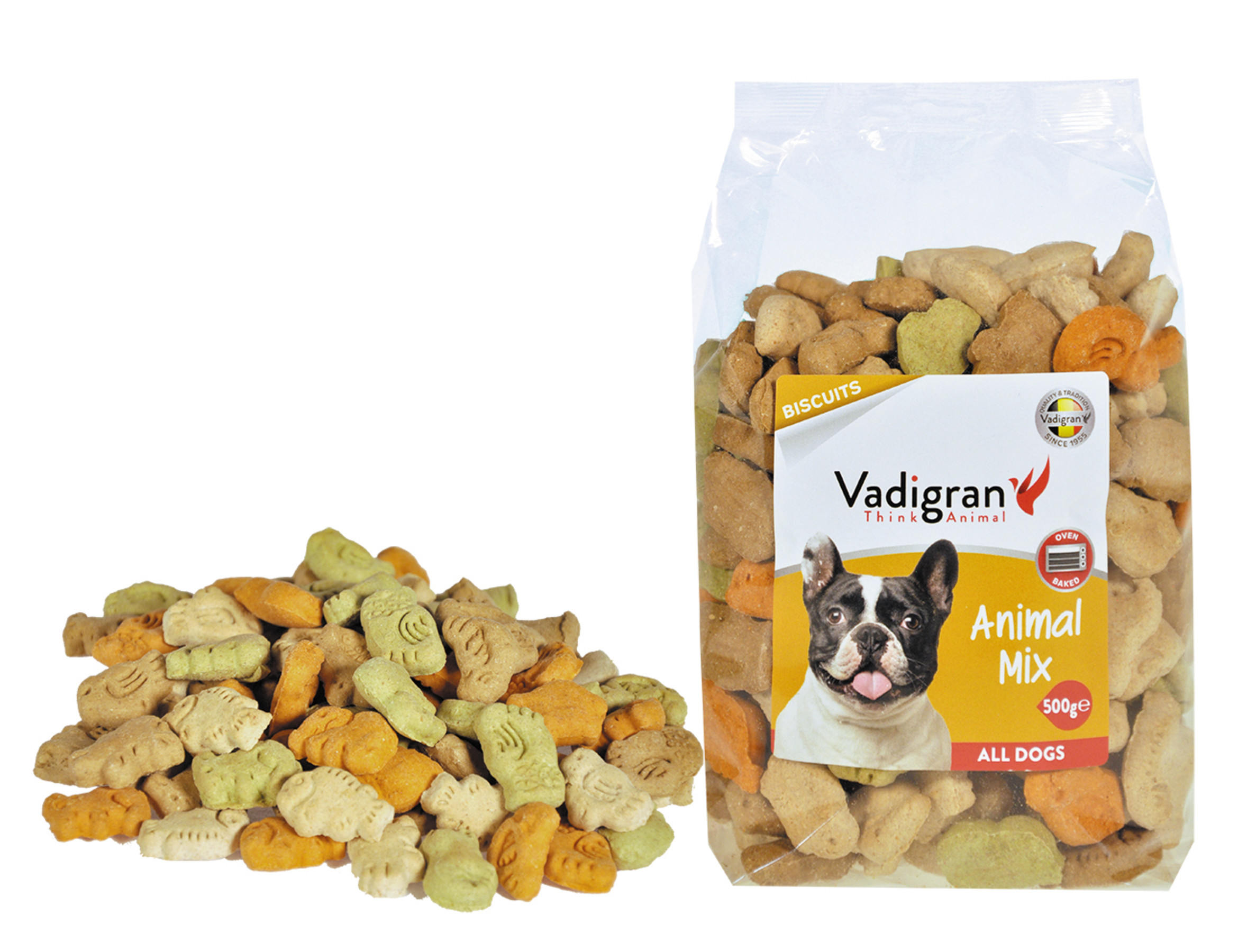De Animal Mix koekjes zijn speciaal ontworpen voor kleine en grote honden.Animal Mix zijn kleine koekjes, beschikbaar in verschillende smaken.Ze bevatten een laag vetgehalte omdat ze in de oven zijn gebakken, maar ze zijn rijk aan vitaminen. Je kan ze dus regelmatig aan je puppy of hond geven.
