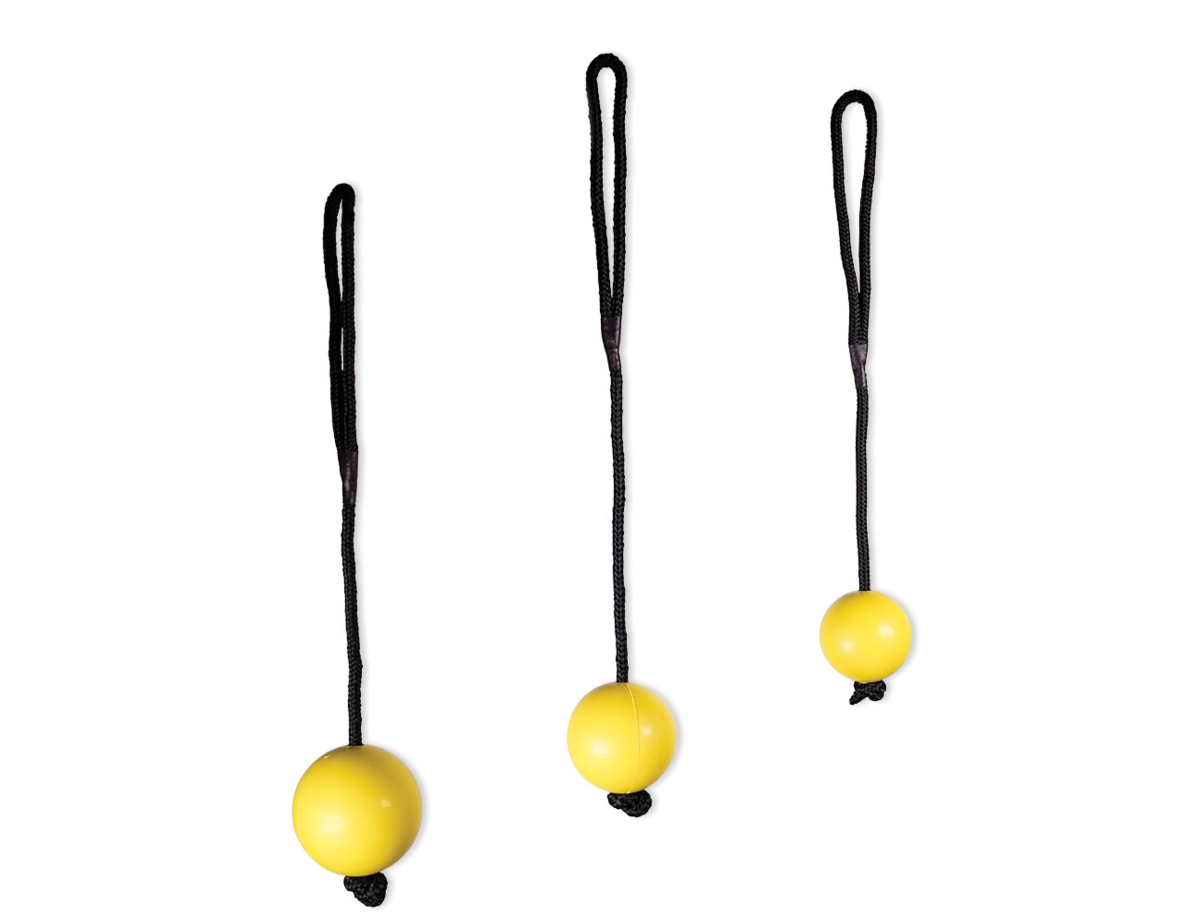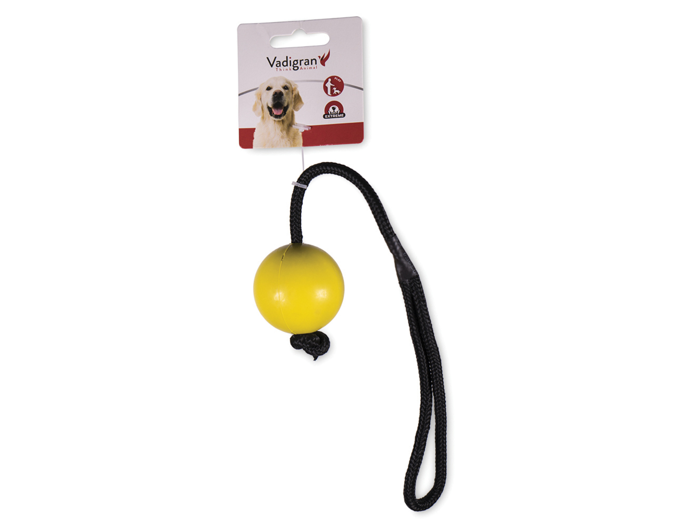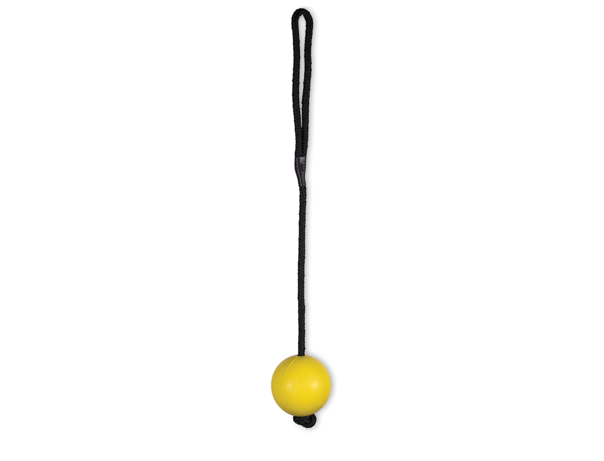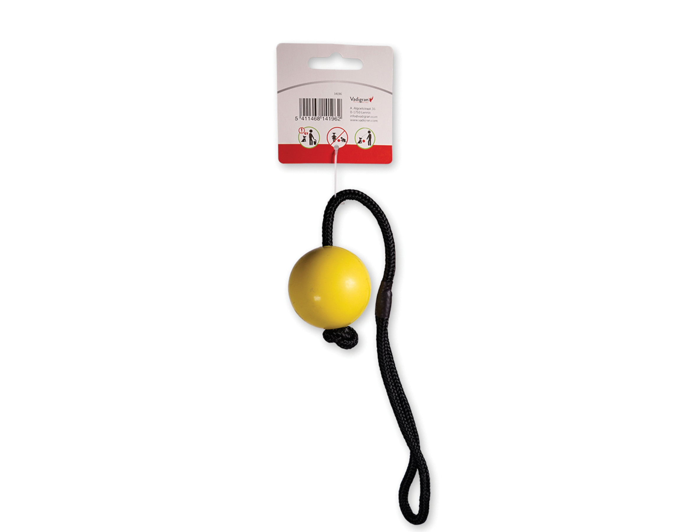 Speelgoed hond rubber bal met touw geel Ø5cm