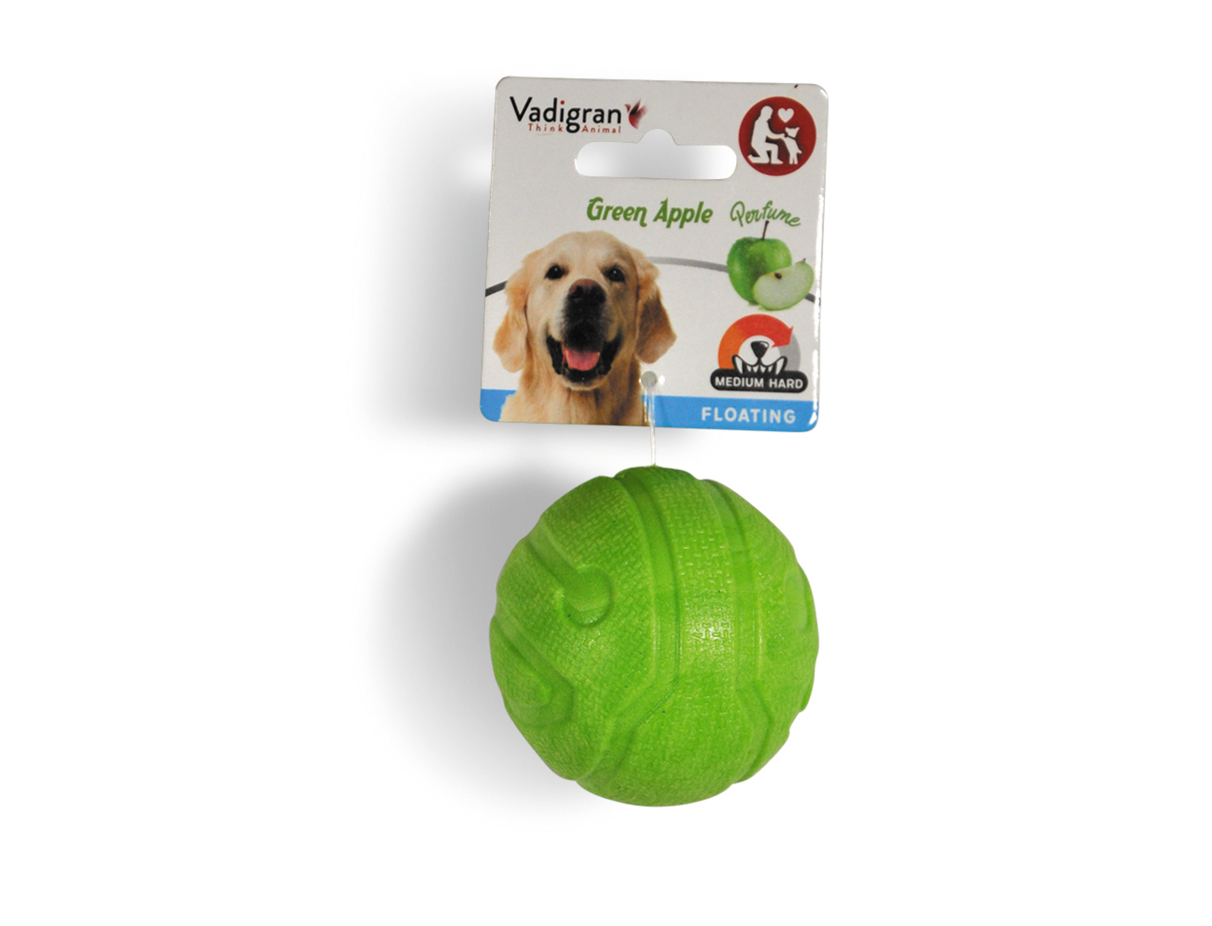 Bal in TPR voor honden, zeer sterk. Dit speeltje is niet enkel robuust, maar ook zeer aantrekkelijk voor de hond dankzij de heerlijke appelgeur.