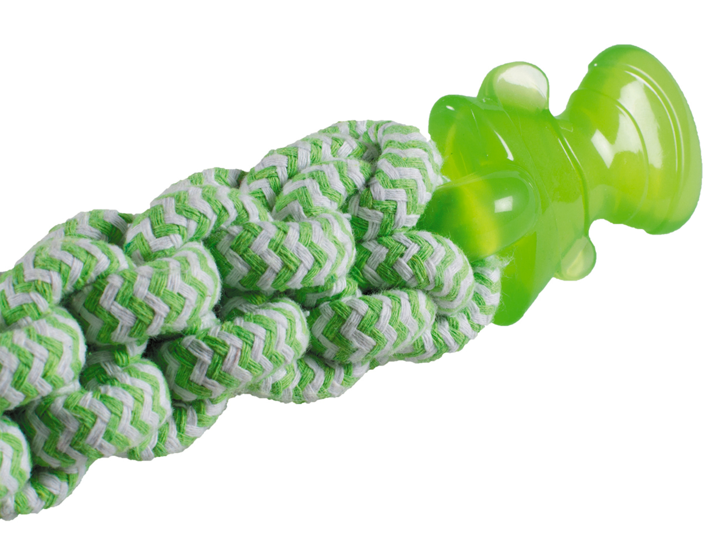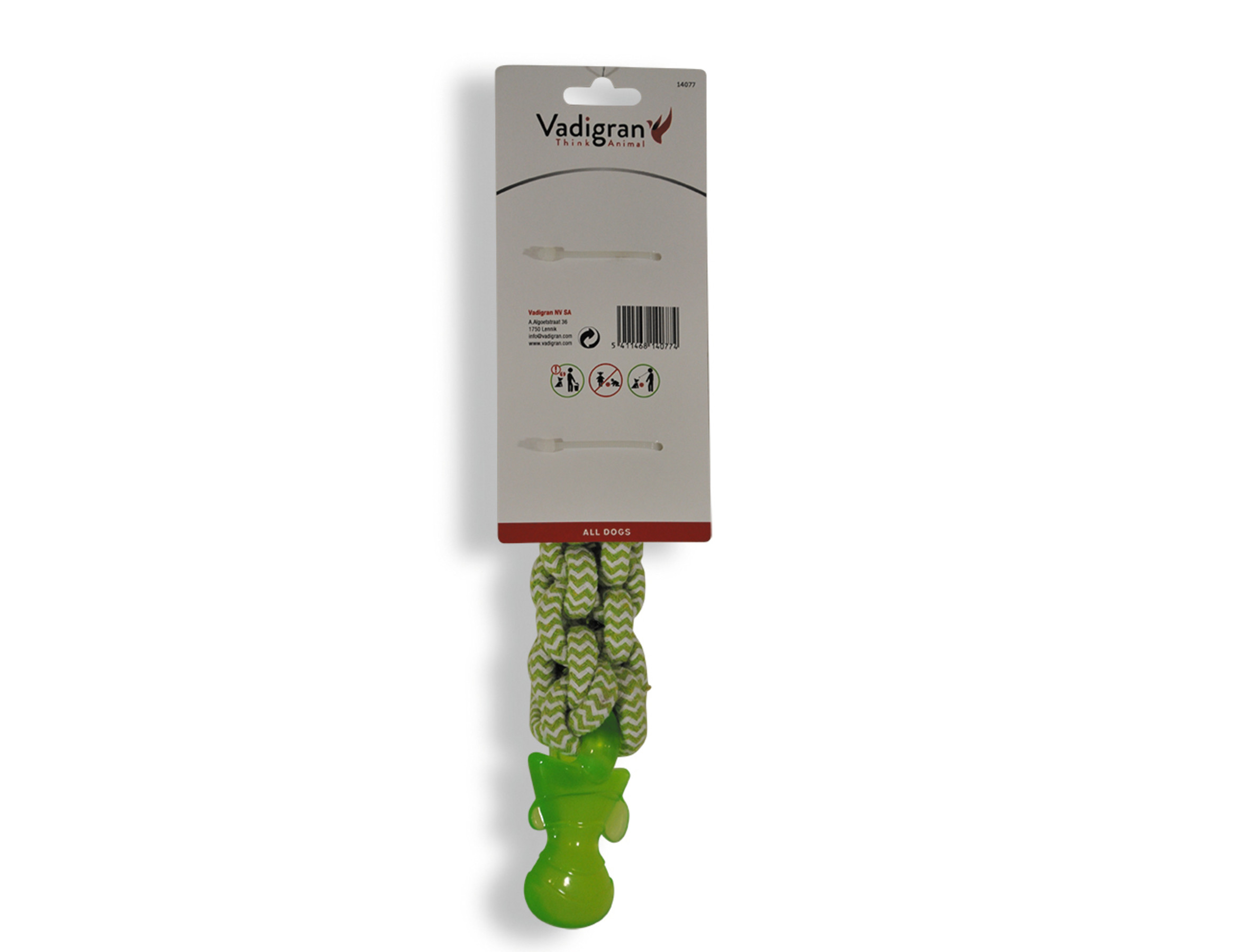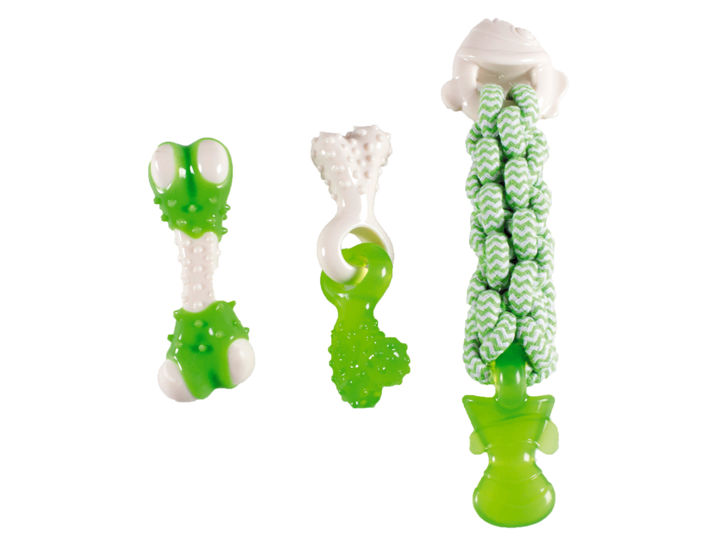 Dit speeltje voor honden en puppies bestaat uit 3 elementen: een vissenkop in TPR, een touw in nylon en een vissenstaart in TPR-schuim. Deze 3 materialen zijn resistent, zodat de hond langdurig op zijn speeltje kan kauwen.Het pluspunt van dit speeltje is het heelijke aroma van munt. Uw hond of puppy zal van zijn smaak houden en u zult de effecten ervan op zijn adem waarderen.Naast het plezier dat het biedt, is dit speeltje ook zeer nuttig voor de verzorging van het tandvlees van uw huisdier. De oneffenheden in het speeltje masseren het tandvlees voorzichtig.