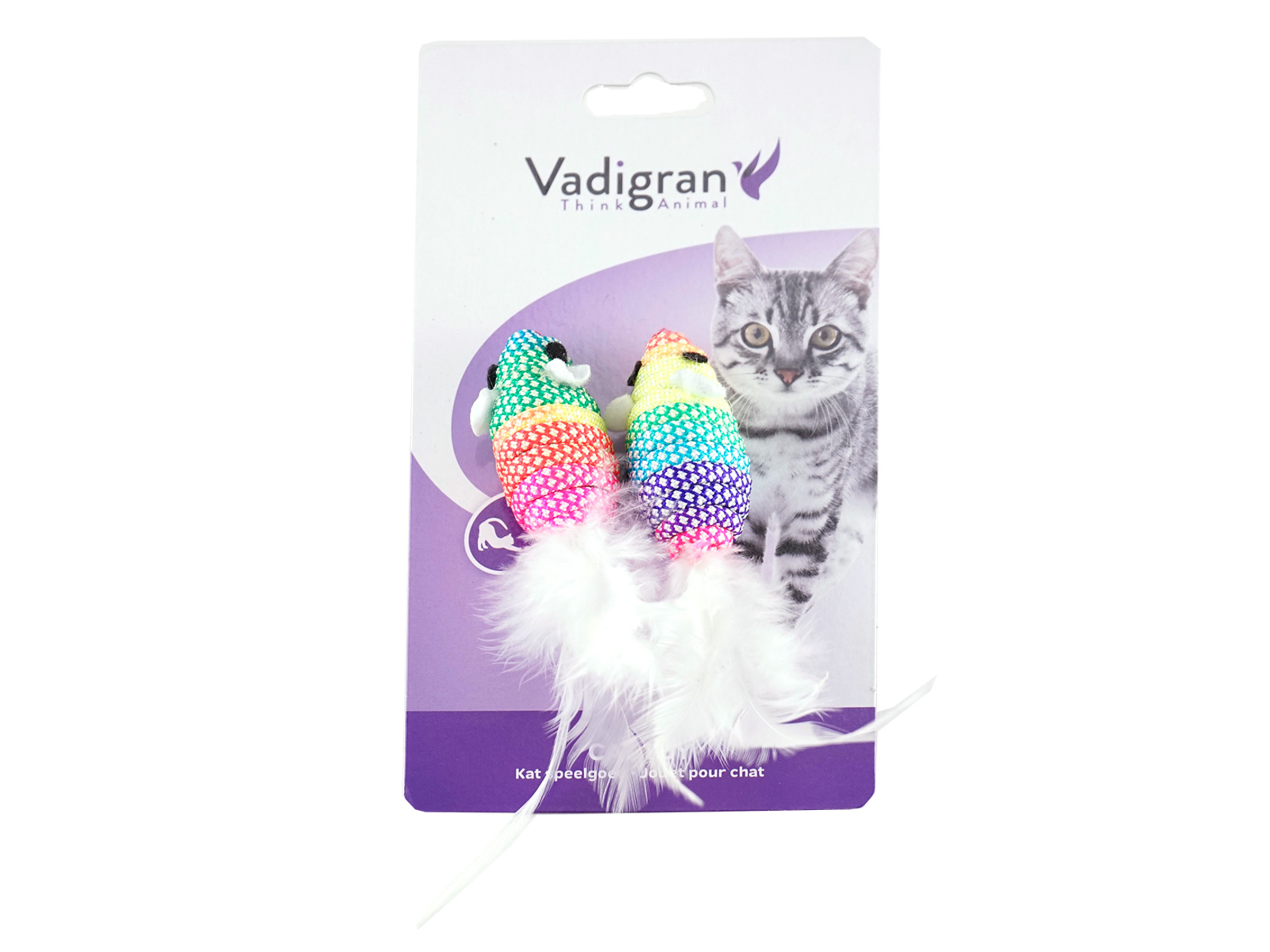 Speelgoed kat muisjes met veer wit 5cm(2)