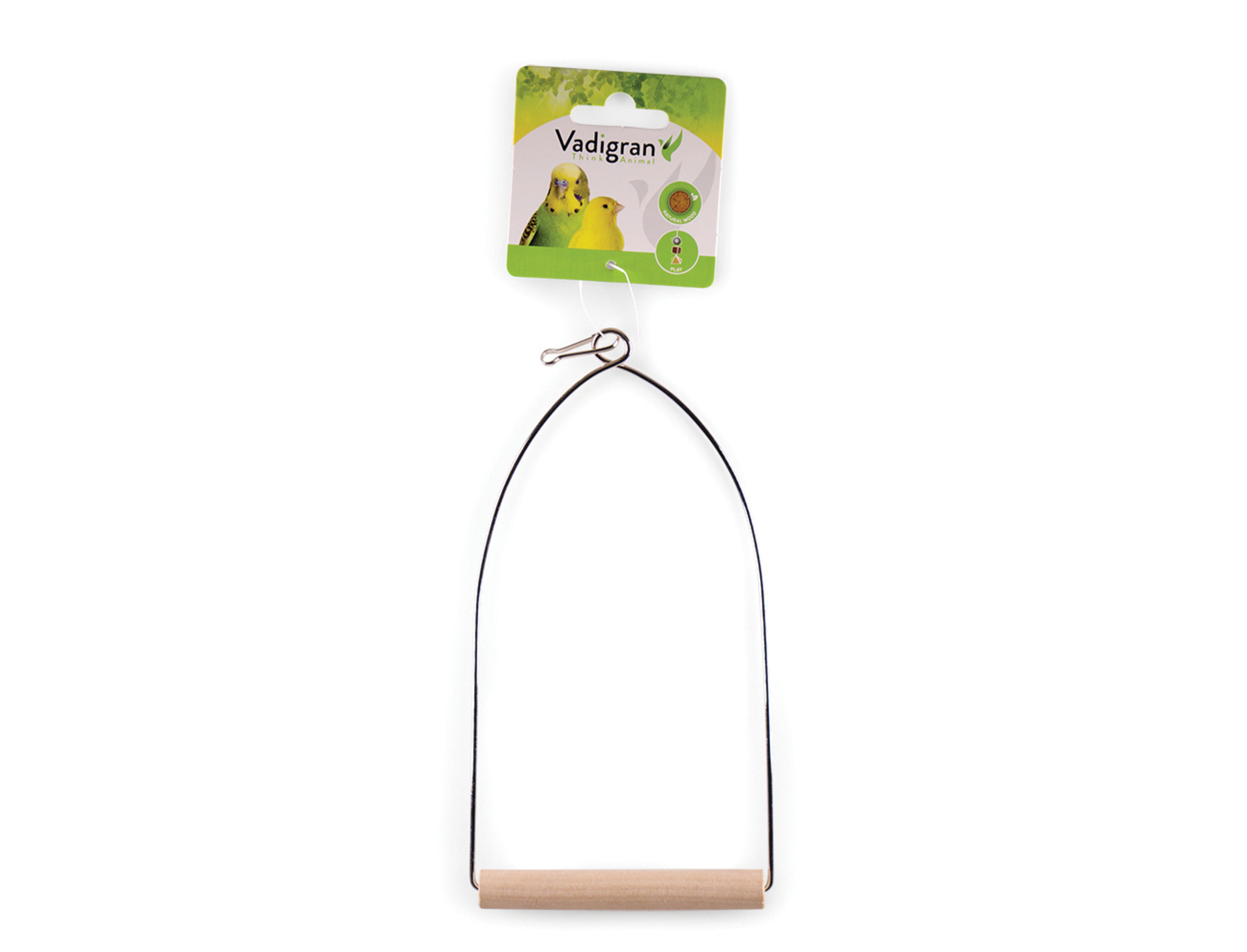 Met deze mooie houten schommel kan je vogel hangen en slingeren.