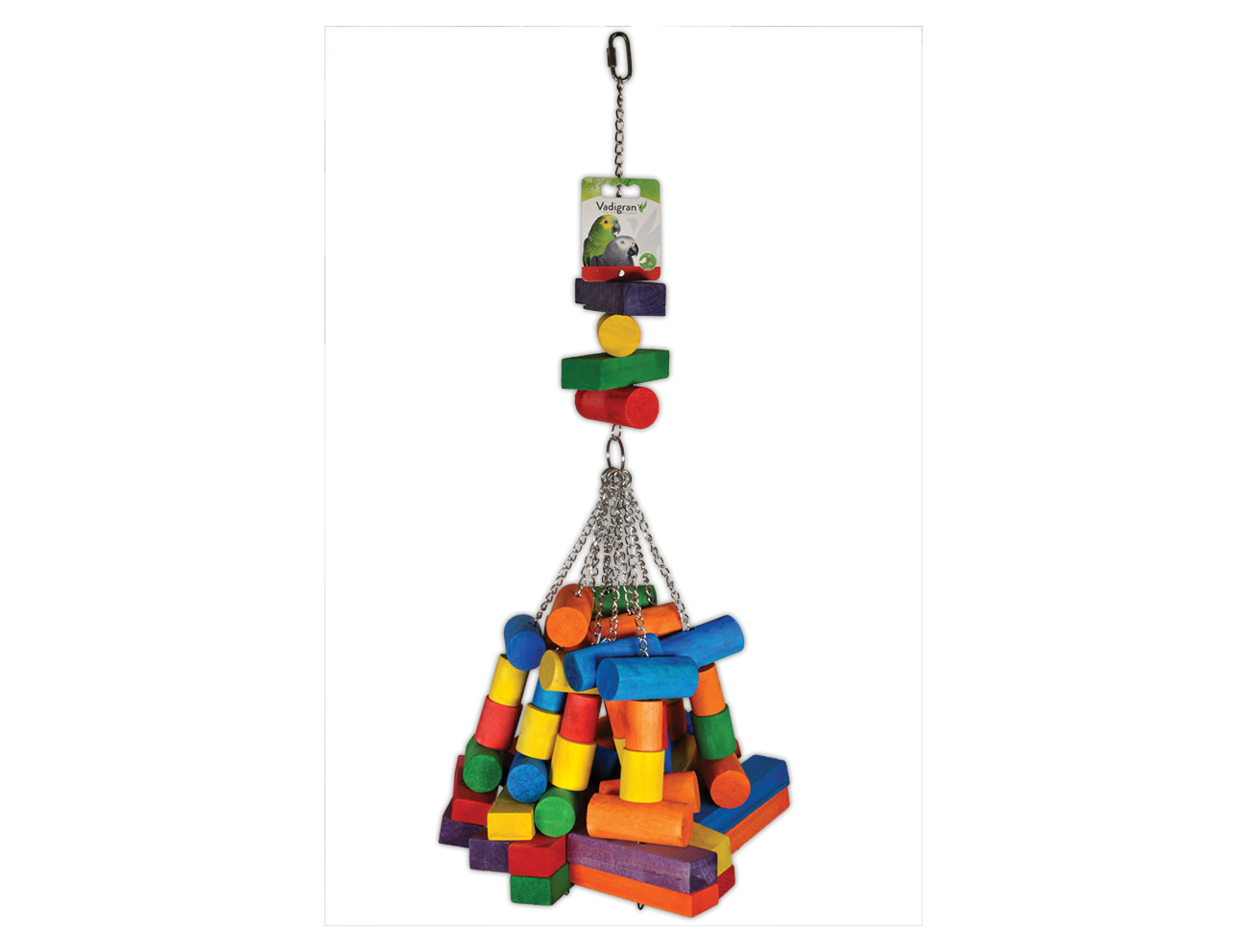Papegaaien zijn heel intelligente en nieuwsgierige dieren. Om verveling tegen te gaan moeten zij worden gestimuleerd en uitgedaagd. Dit speelgoed zal hem stimuleren om te spelen en te klauteren. Het stimuleert zijn natuurlijk gedrag en zorgt voor voldoende afwisseling.