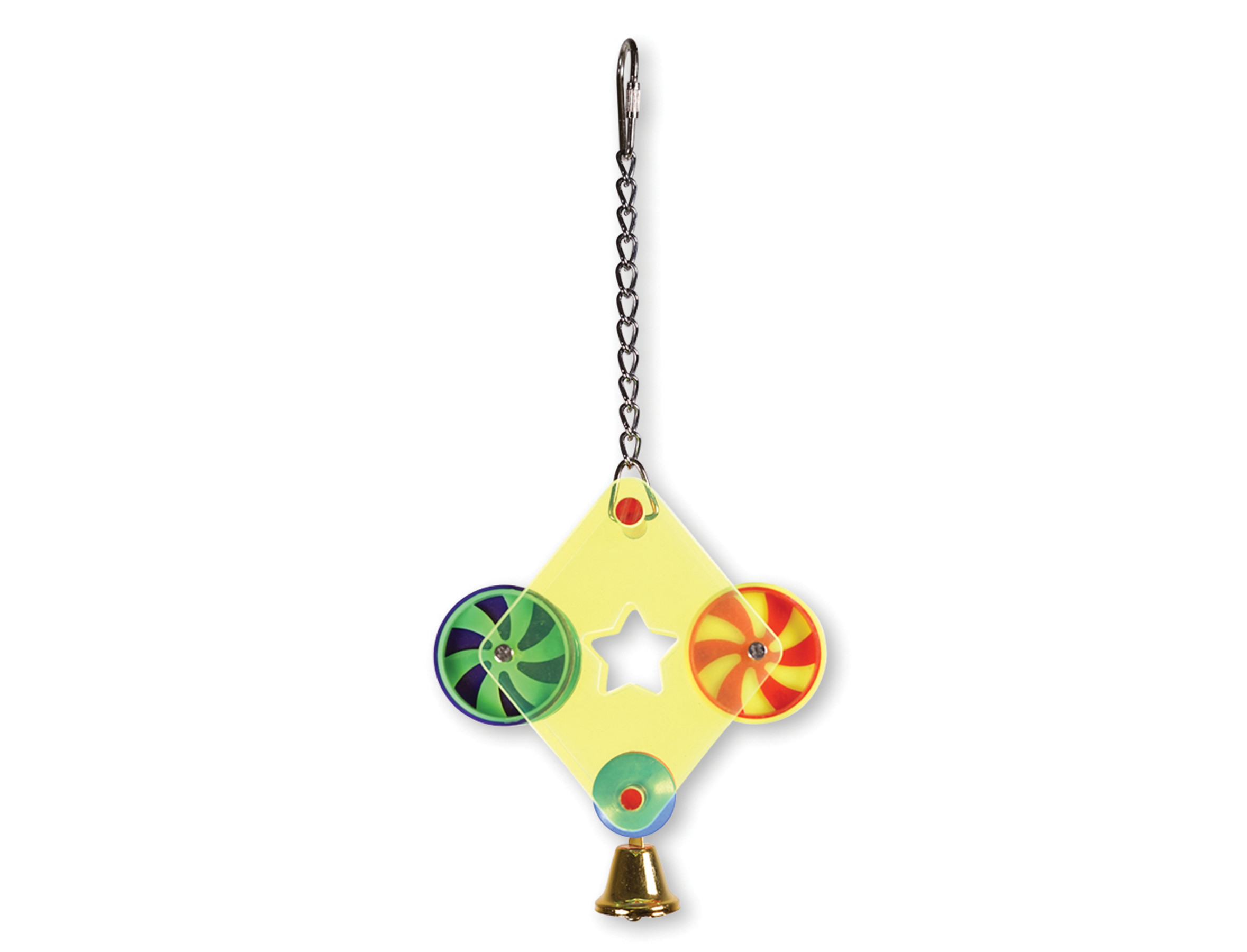 Speelgoed vogel plexi met draaiende wielen 22cm