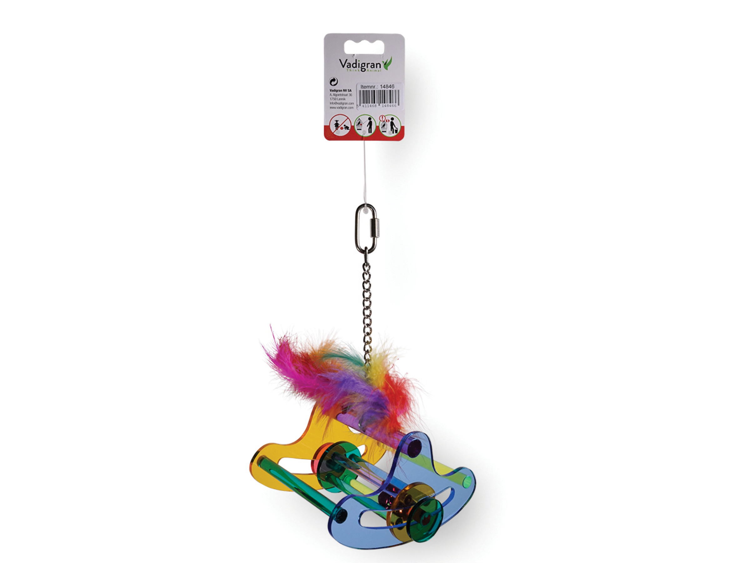 Speelgoed vogel Schommel bel en veer 15x13x11cm