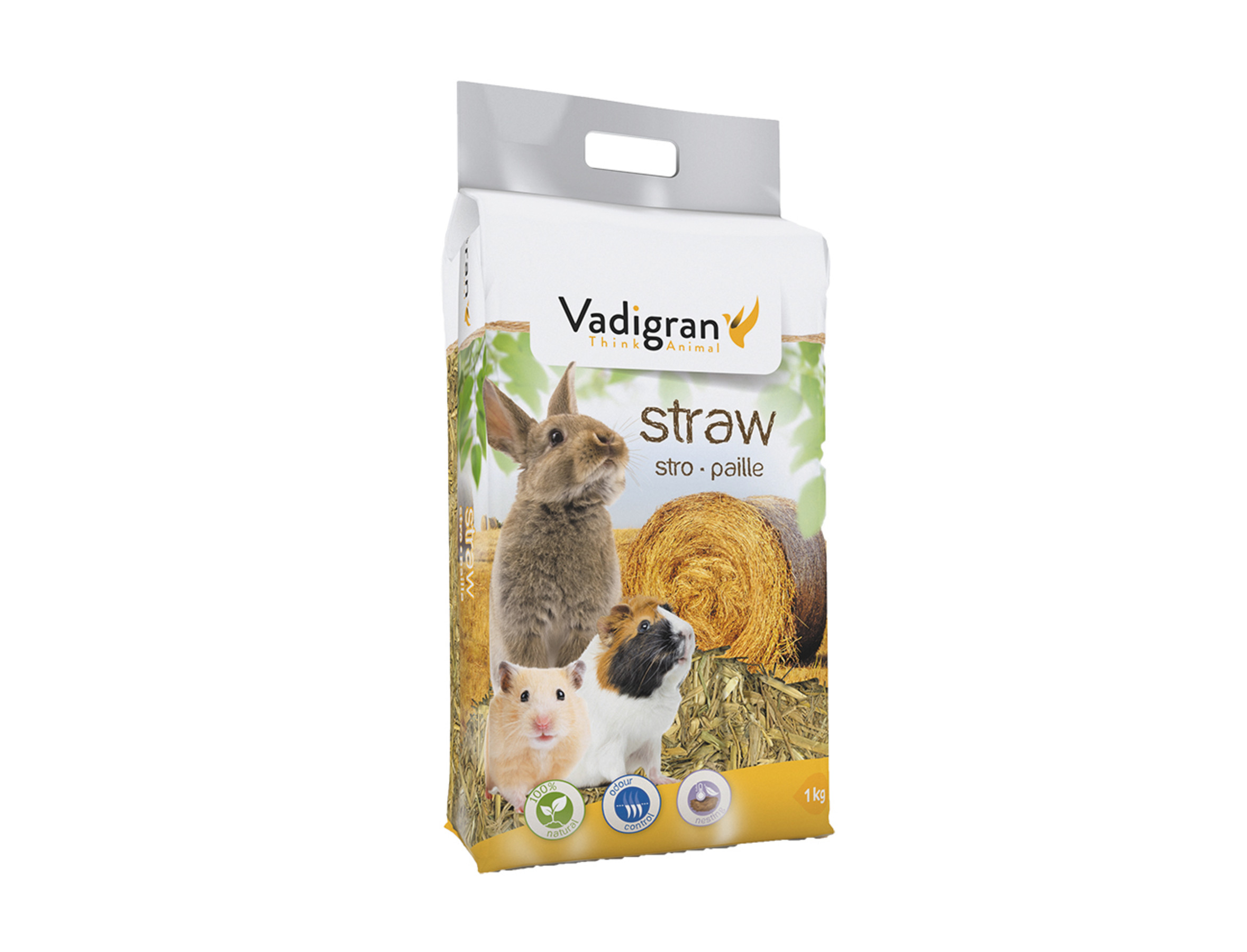 Het Vadigran stro is een 100% natuurlijk absorberend strooisel dat je kan gebruiken als bodembedekker voor de kooien van je konijnen en knaagdieren.Deze bodembedekking is 100% natuurlijk, zonder additieven, en absorbeert urine en geuren optimaal. Het stro zal een warme en comfortabele omgeving creëren waar je huisdier zich goed zal voelen.De knaagdieren houden ervan stro te eten, dus het zal bovendien dus een zeer goed voedingssupplement zijn.Het kleine pluspunt: deze bodembedekking geeft een zeer aangename, natuurlijke geur af van die de kooi omgeeft.