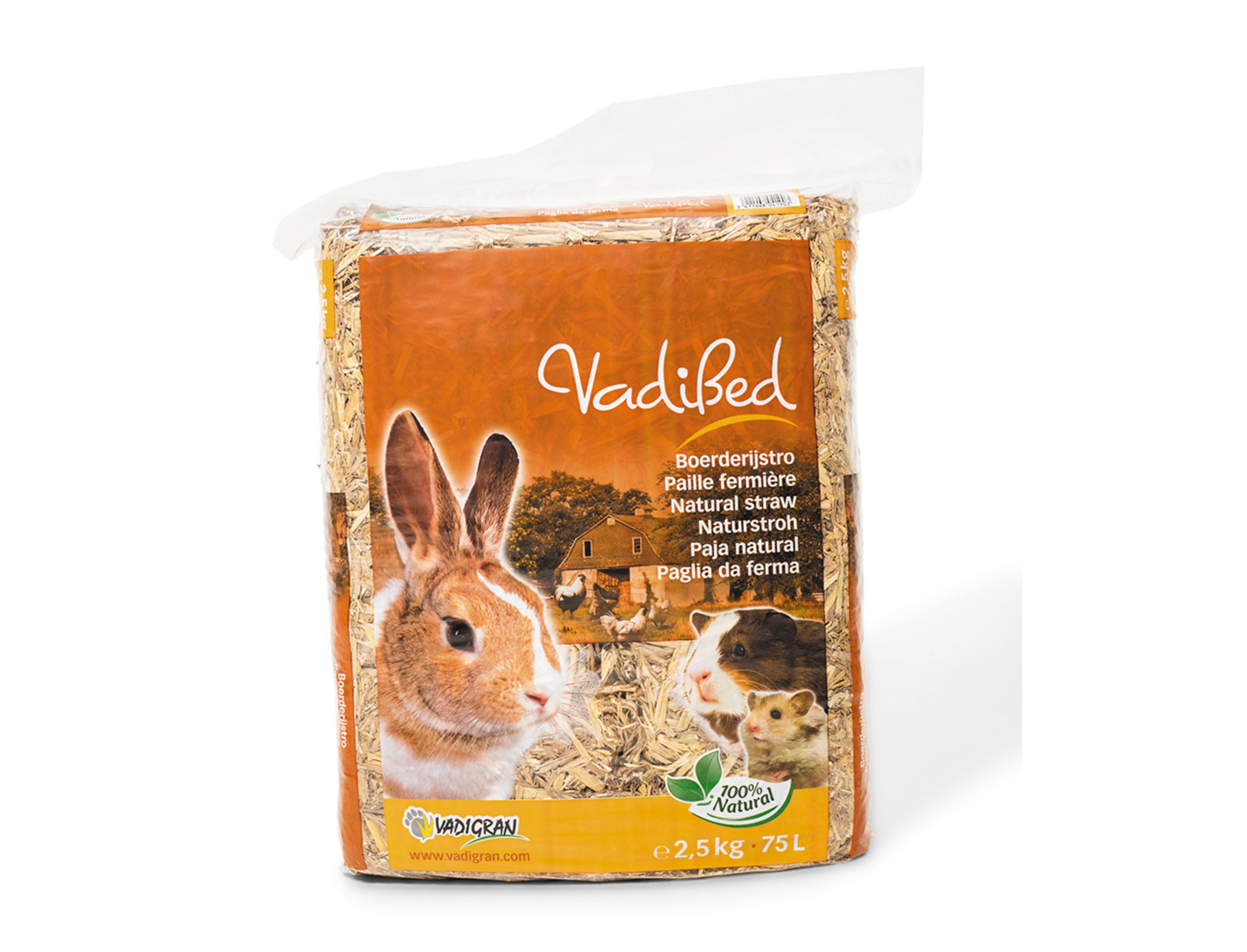 Het Vadigran stro is een 100% natuurlijk absorberend strooisel dat je kan gebruiken als bodembedekker voor de kooien van je konijnen en knaagdieren.Deze bodembedekking is 100% natuurlijk, zonder additieven, en absorbeert urine en geuren optimaal. Het stro zal een warme en comfortabele omgeving creëren waar je huisdier zich goed zal voelen.De knaagdieren houden ervan stro te eten, dus het zal bovendien dus een zeer goed voedingssupplement zijn.Het kleine pluspunt: deze bodembedekking geeft een zeer aangename, natuurlijke geur af van die de kooi omgeeft.