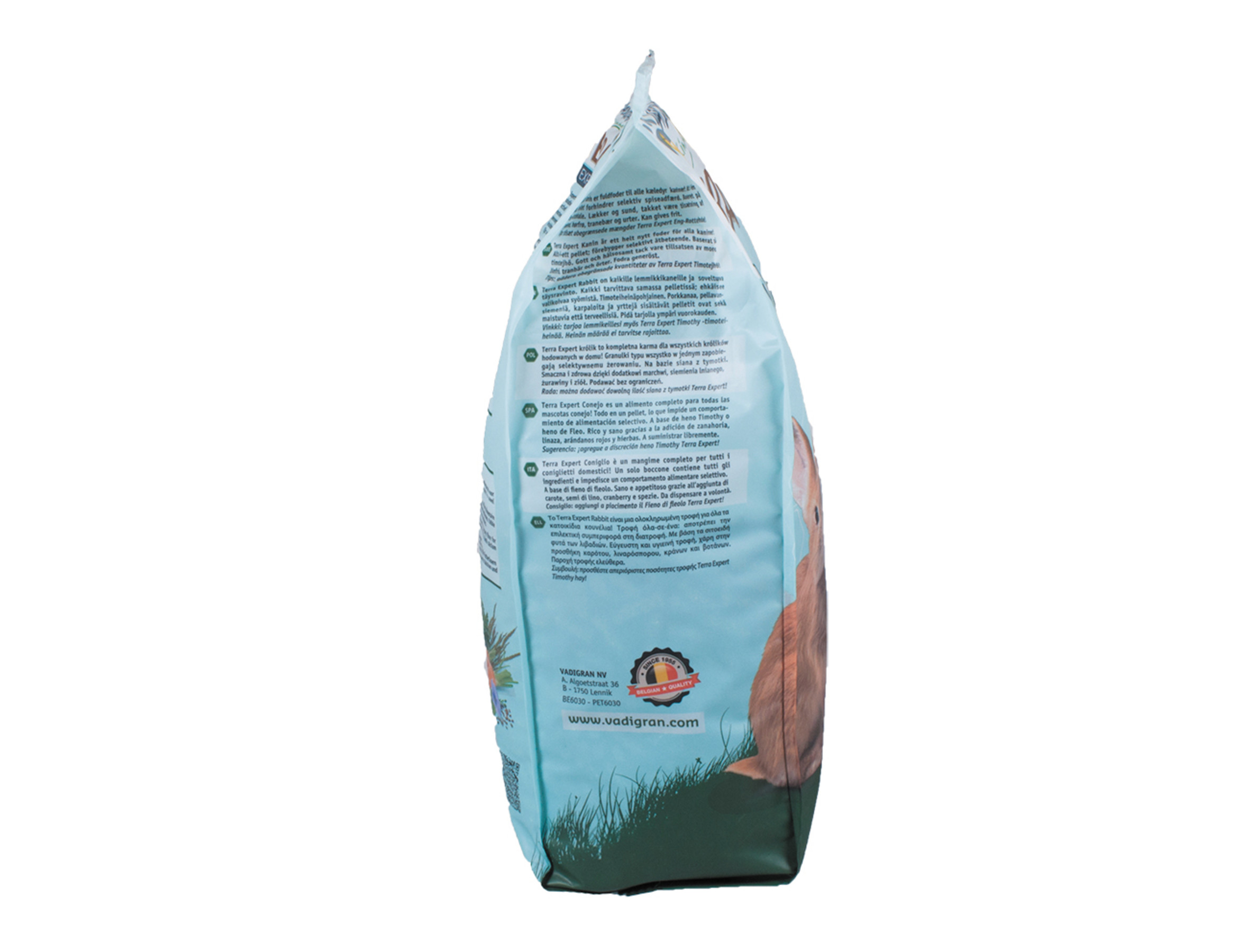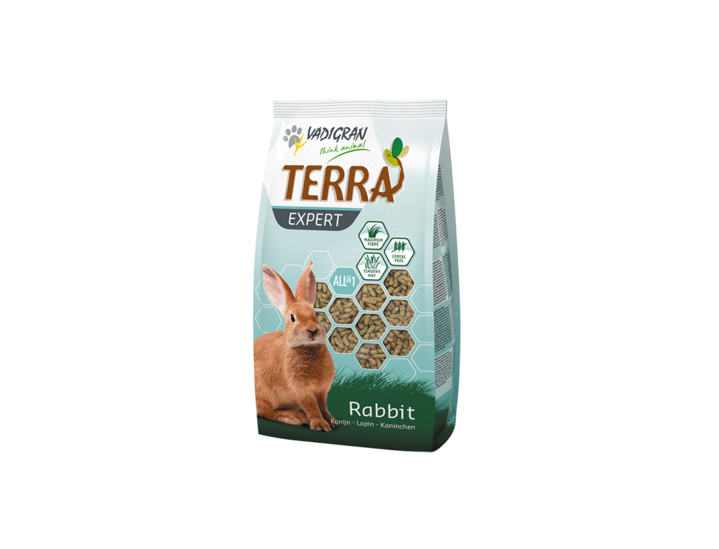 TERRA Expert konijn is een compleet voeder voor alle huisdier-konijntjes.Alles in één brokje; geen selectief eetgedrag mogelijk. Op basis van Timothee hooi.Lekker en gezond dankzij de toevoeging van wortelen, lijnzaad, veenbessen en kruiden.