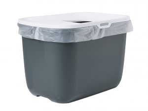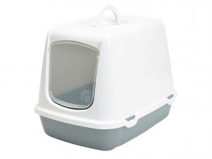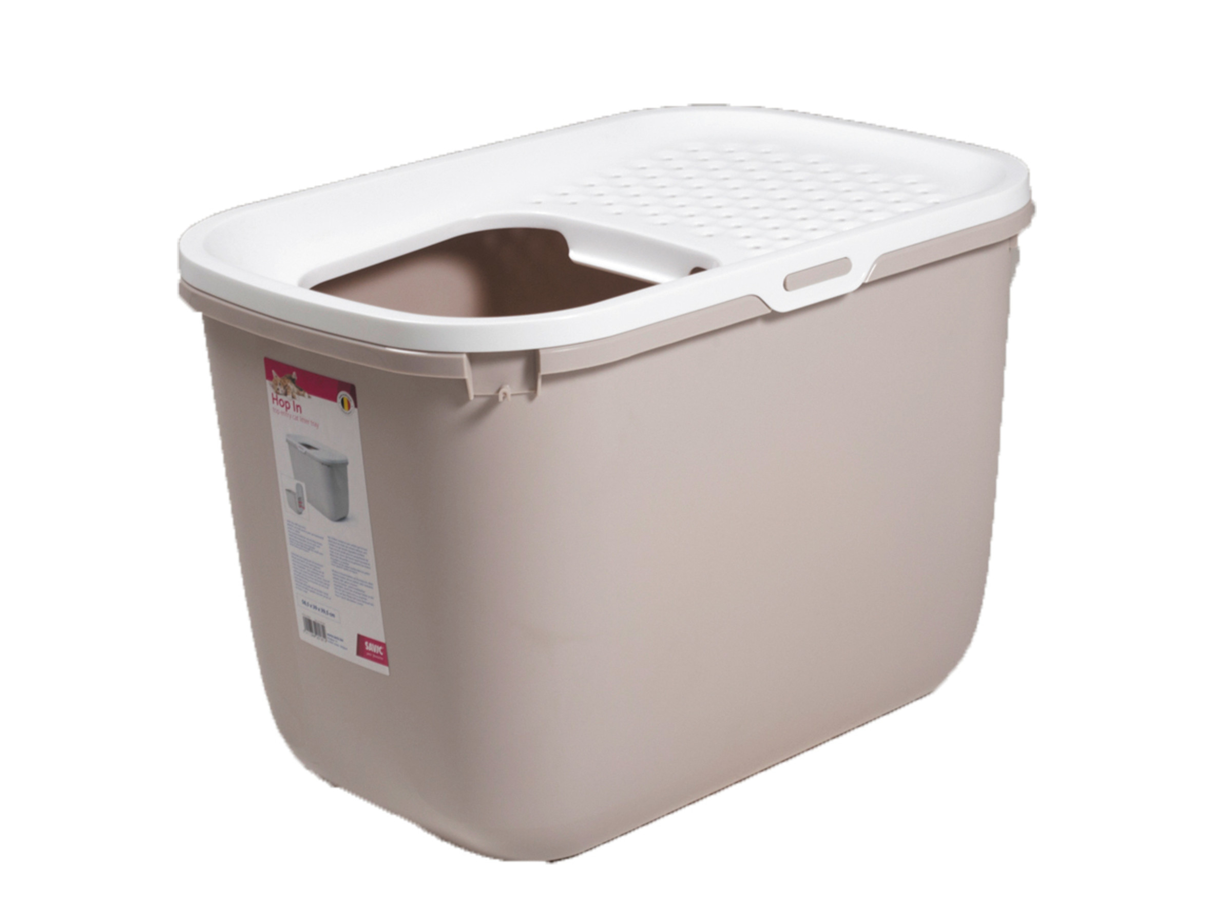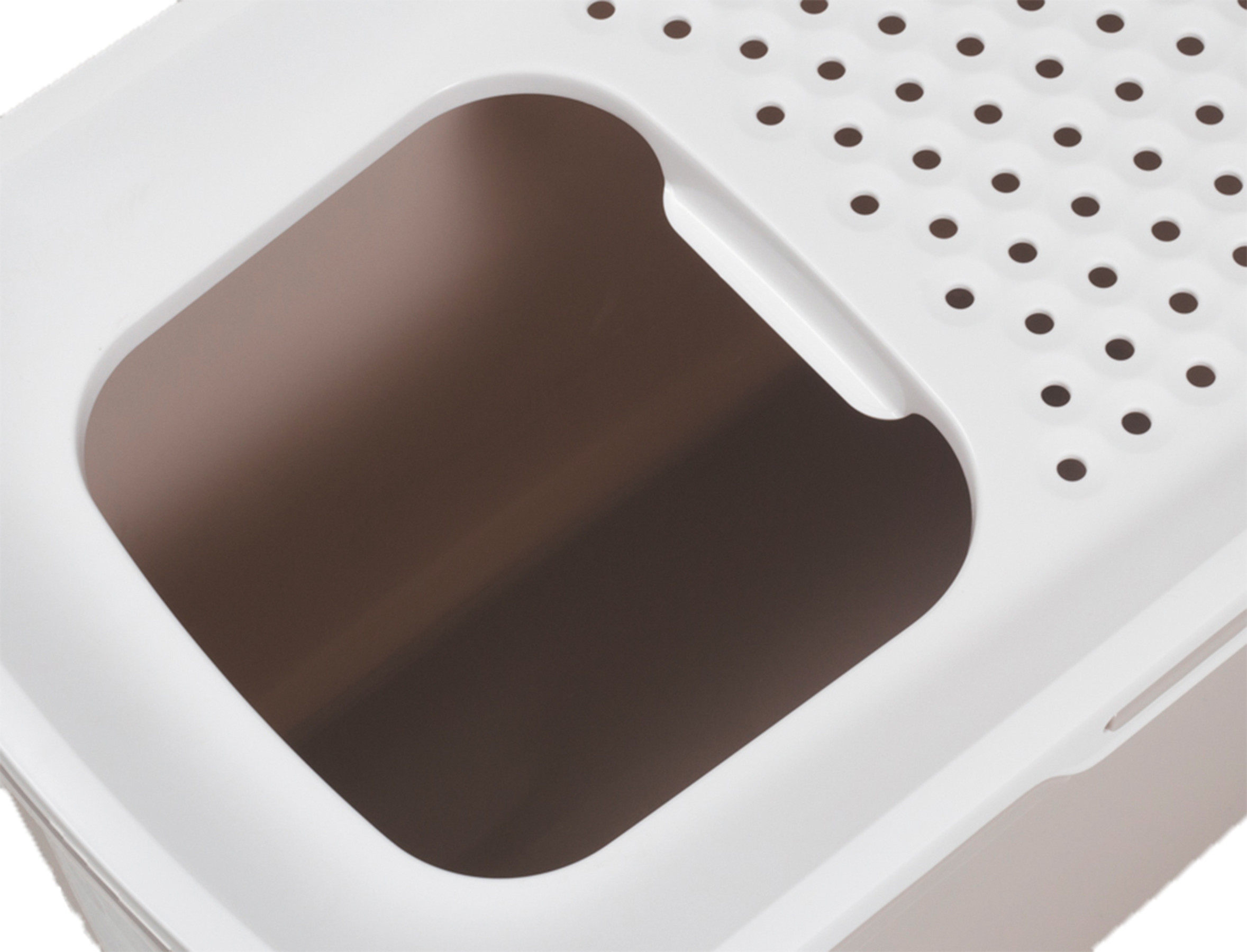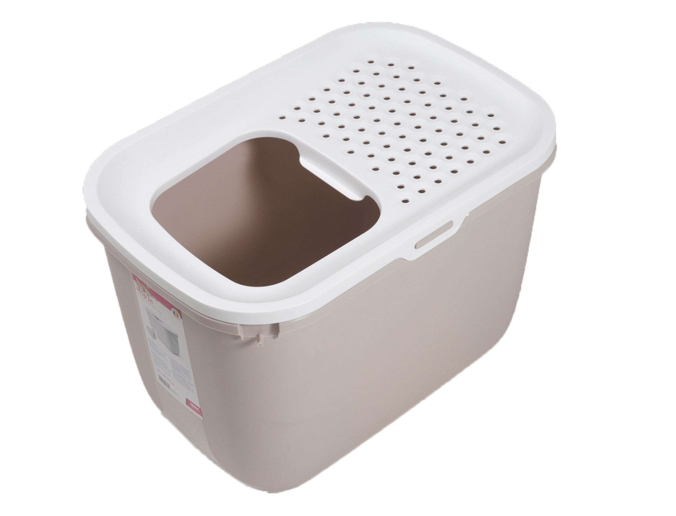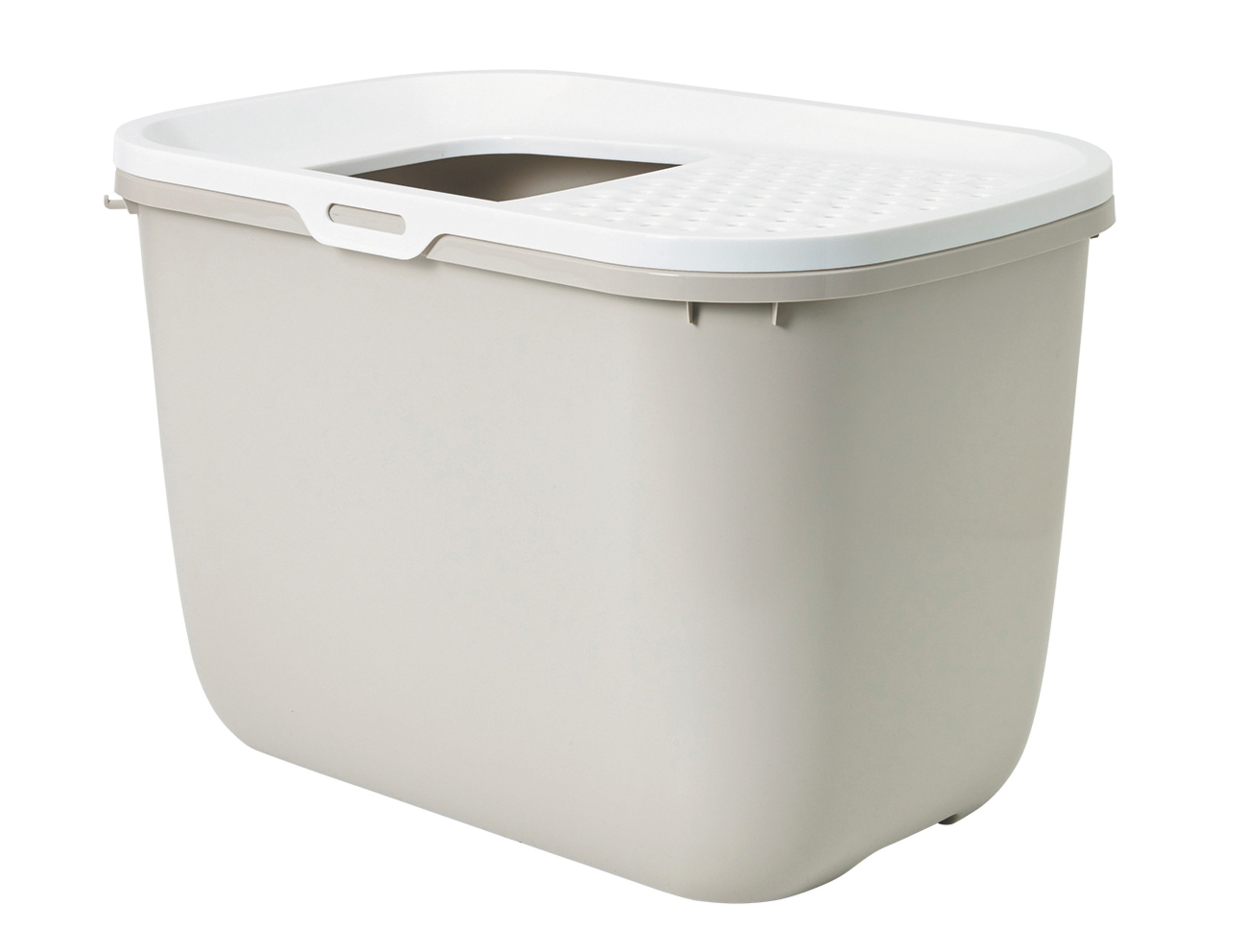 Moderne kattenbak met opening aan de bovenkant. Geschikt voor katten die achteruit stappen tijdens het plassen of voor katten die graag hun urine verspreiden.