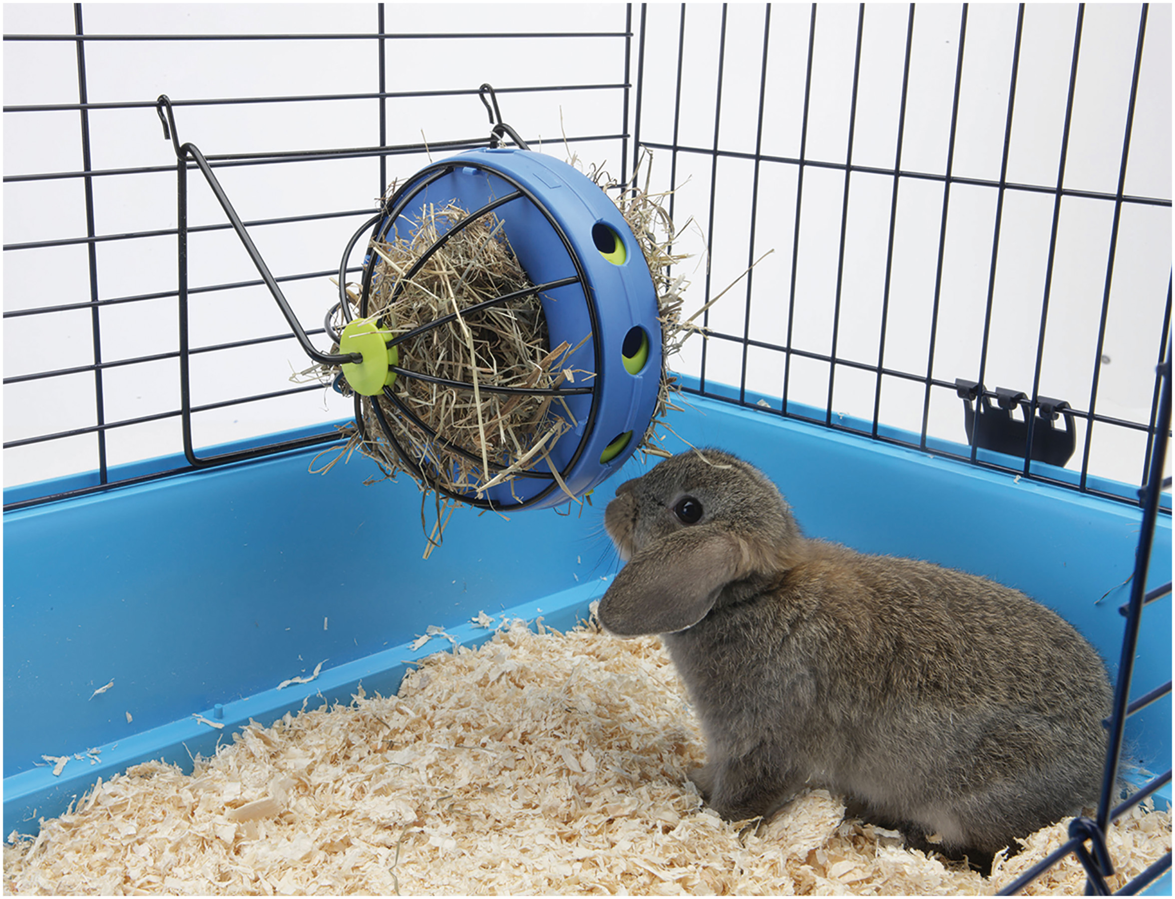Kan gevuld worden met hooi, sla en andere versnaperingen.